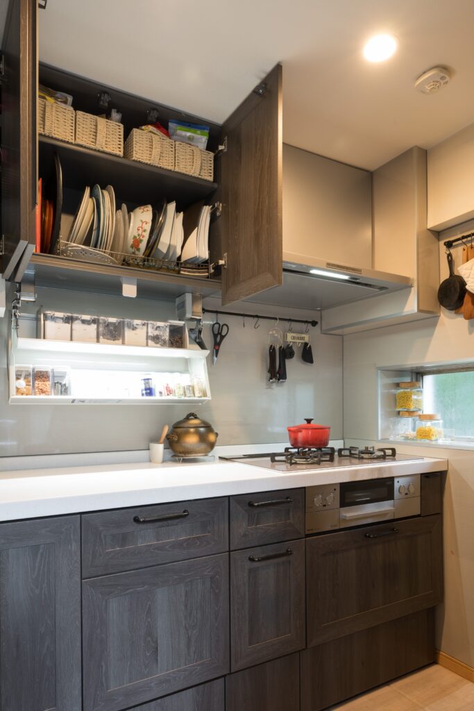 フライパンや調味料、食器などを「どこに収納するか」にはこだわりました