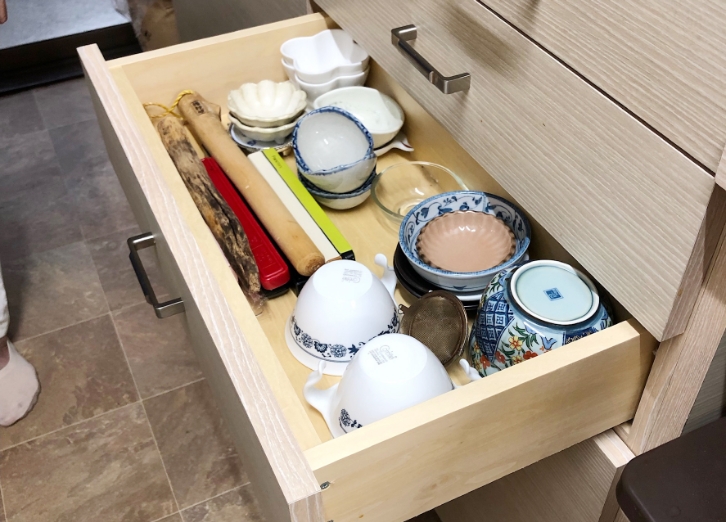 もうひとつ困っていたのは、収納の問題です。リフォーム前の収納は奥行きがあるタイプだったので、奥のほうの調理器具は全部出してからでないと取れなくて…。リフォーム後の収納は奥行きがなくて、取り出しやすい。全て見渡せるのでガチャガチャ探す手間がないんです!キッチンの使い勝手って収納のよしあしで大きく変わるもんなんですね。