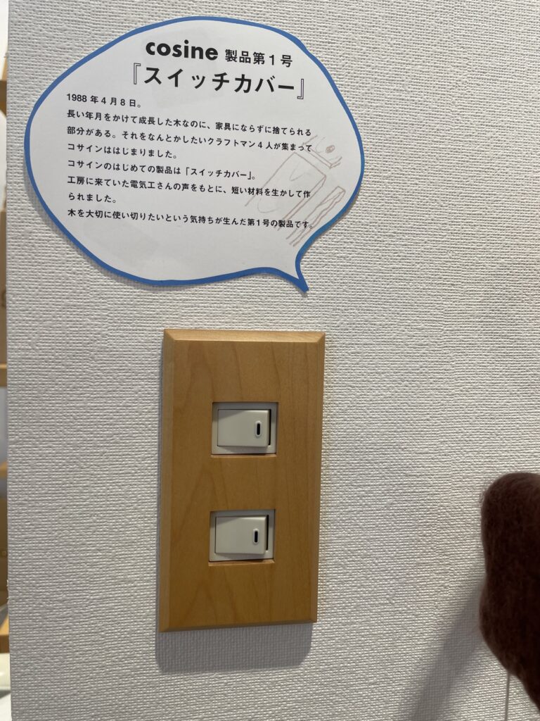 もとは家具のクラフトマンが集まり、木の切れ端までも有効に活用しようと、電気のスイッチカバーから始まった会社だといいます。