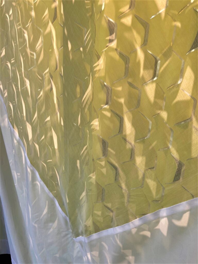 “カーテンてこういうもの”という従来の枠にとらわれず、生地を斜めに切ったり、2枚重ねて影を落としたり、こんなに自由で新しい発想があるのですね!