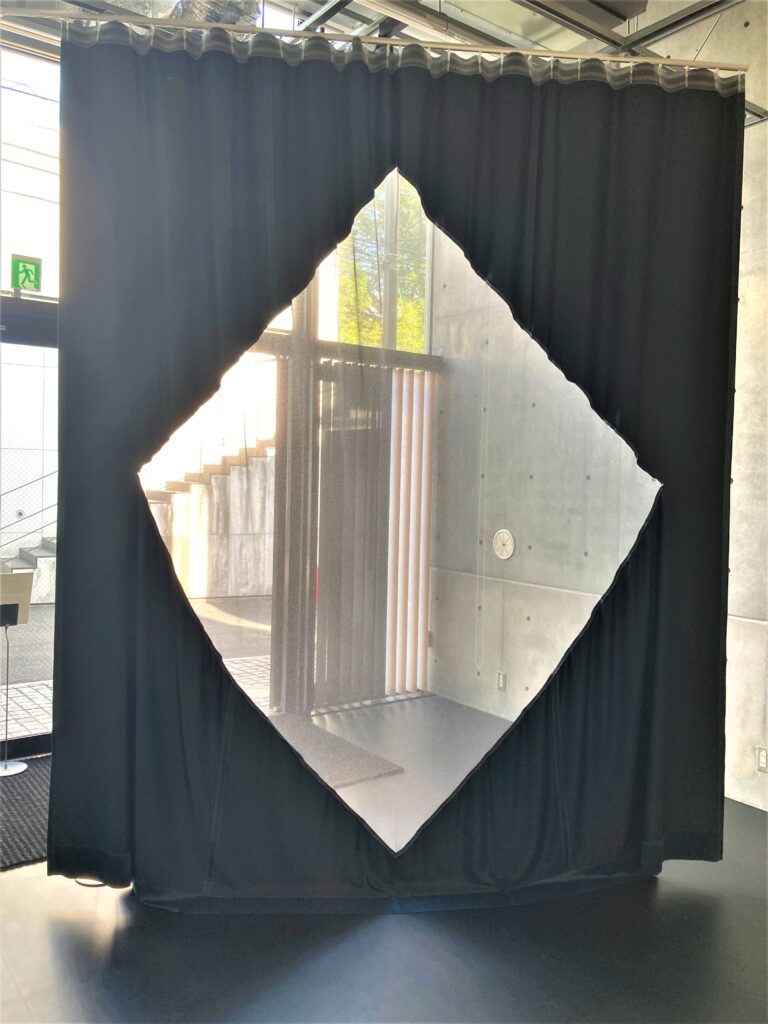 カーテンの真ん中に開けられた菱形のレース地(ファインダー)を通して向こう側を覗くと、自分の想像のフィルターが掛けられるのでしょうか。風景ではなく情景を見ているような、不思議な感覚が混じります。