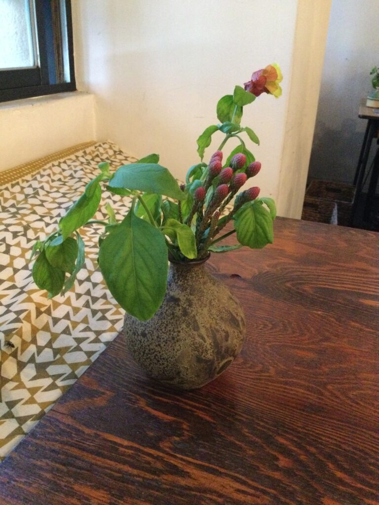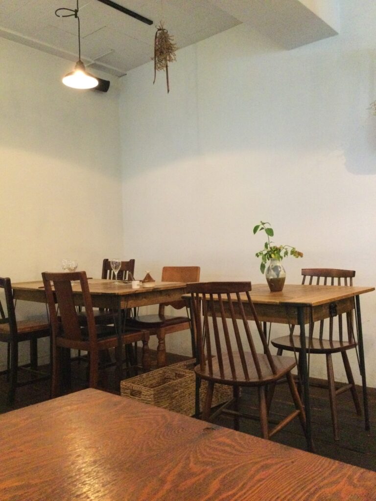 こちらはフレンチレストランなのですが、洋食器ではなく益子の作家さんの器を使い、カトラリーもまずはお箸、というようなお店。