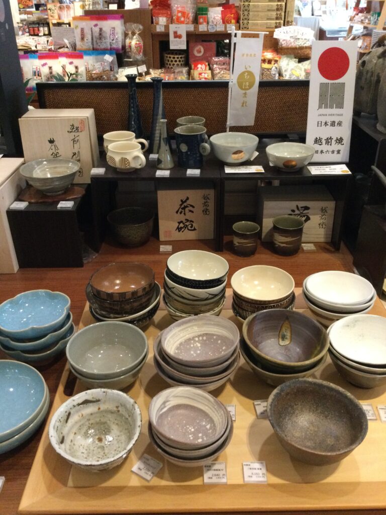 お腹を満たした後は福井の名産品を眺めて「さっきの立派な油あげ!」「マスクケースも販売してる」などと言いながらお店を後にしました。さ、燃料補給したのでもう一軒訪問しますよ!