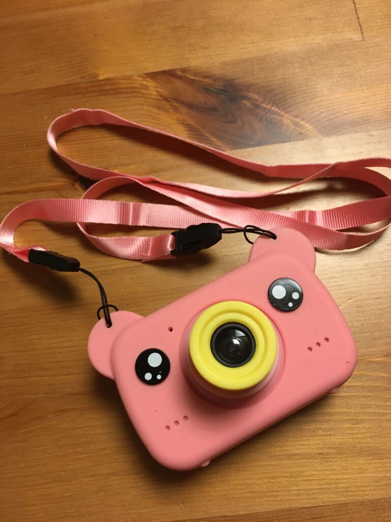 子ども用カメラのストラップを、付属品の味気ない平打ひもから丸紐に取り替えてみました!