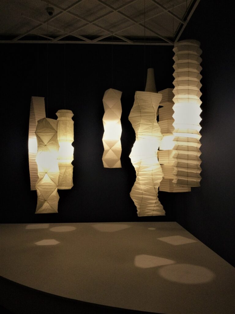 この「あかり」シリーズは、イサムが岐阜提灯から発想を得て制作されました。彫刻は昔から木や石、金属で作られるものですが、イサムは光で彫刻を創ろうと思い付きます。“固くて重いものだけが彫刻ではない”という気付き。彼は、“暮らしの空間を光の彫刻で変えたい”と思っていました。