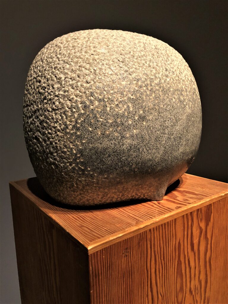 上の写真の作品「幼年時代」は、石にノミで無数の穴をあけ、正面だけツルツルになっています。イサム少年の頭の中・胸の内がこの作品を見て、何か伝わってくるように思えました。傷付けながらフツフツと無数に湧き上がるのは怒りなのか、疑問なのか、焦がれる思いなのか。今にもツルツルの面を覆い尽くしそうな勢いです。でも、覆い尽くされていません。