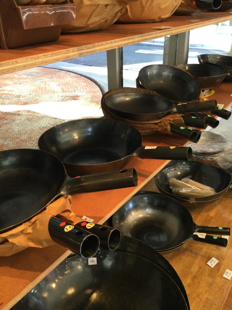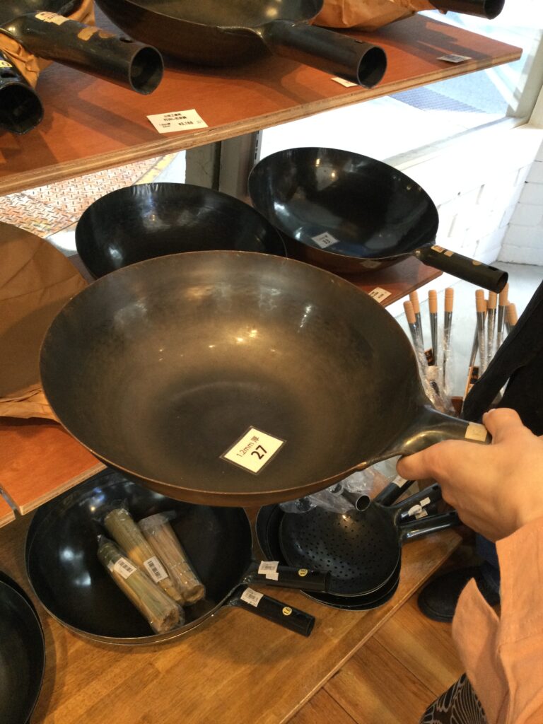 スッキリ見やすい店舗をブラブラと見ていると、ケイコが唐突に「鉄のフライパンを買いたいんです」近くの店員さんに声を掛けます。
