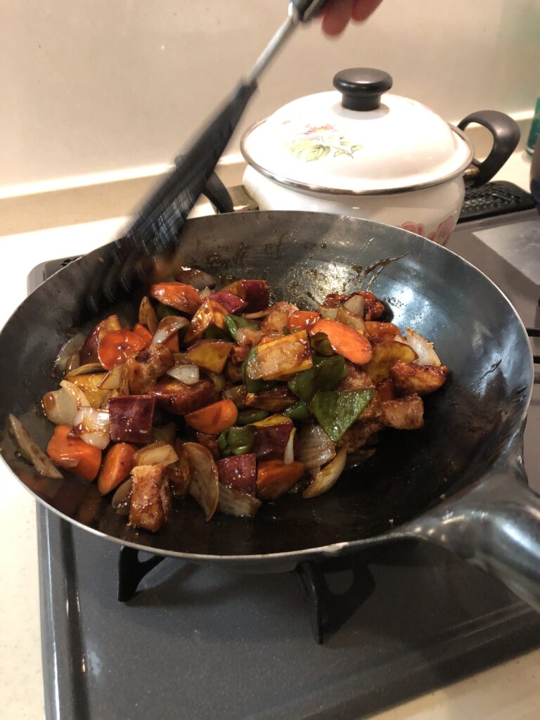 ある日のメニューは黒酢酢豚。いよいよ北京鍋を使う日がやってきました。
