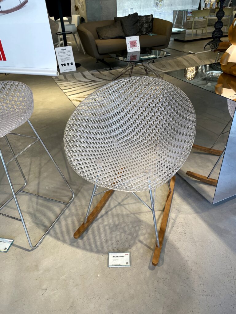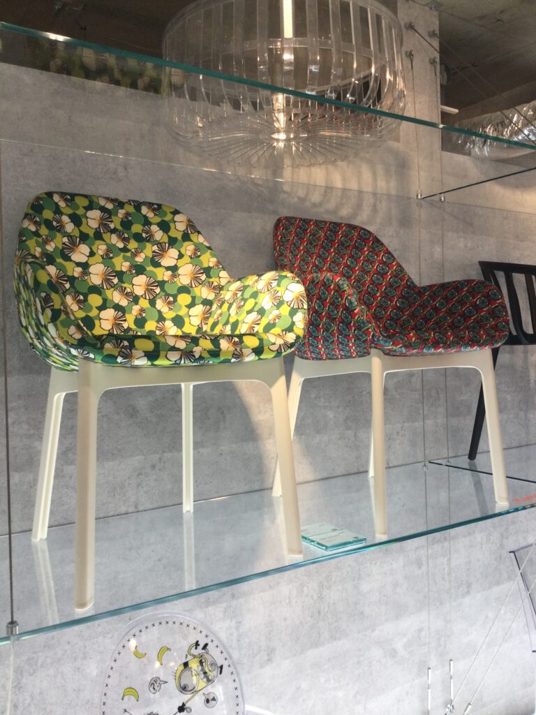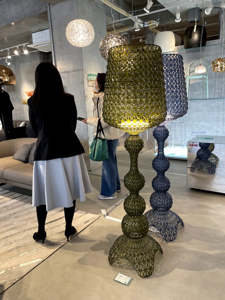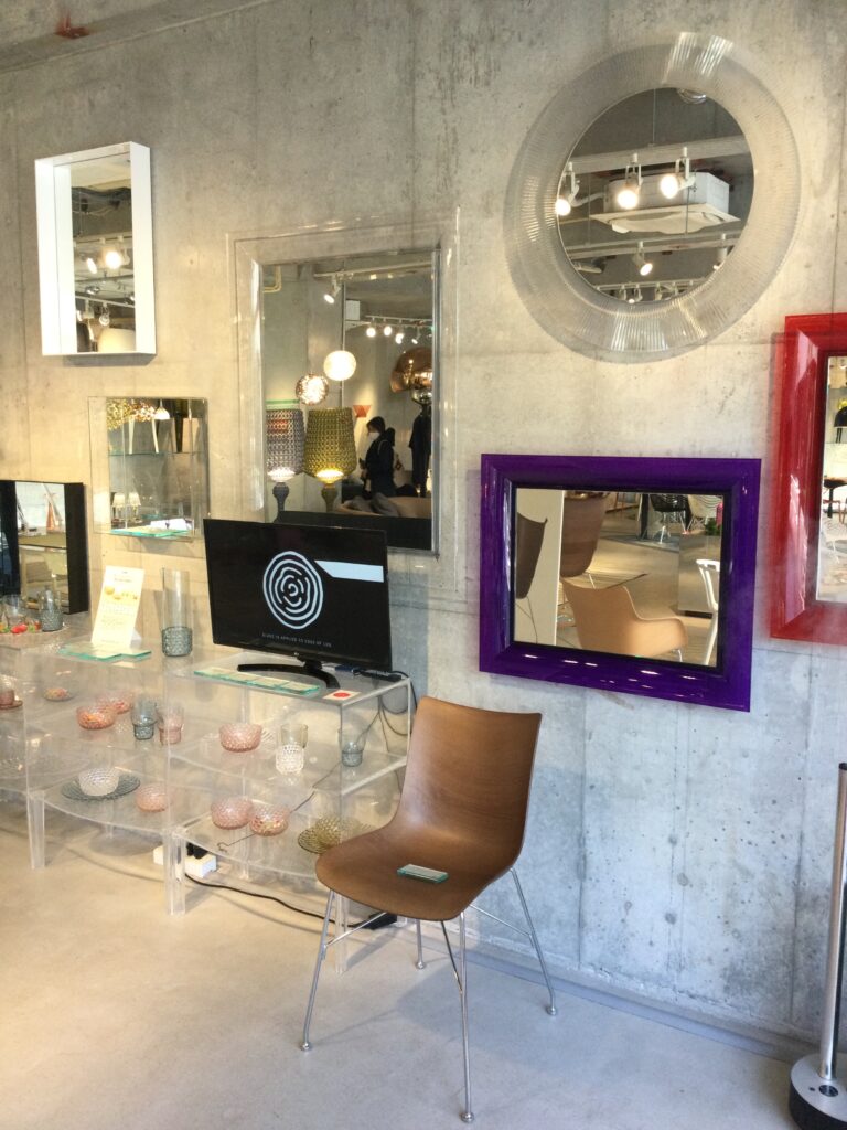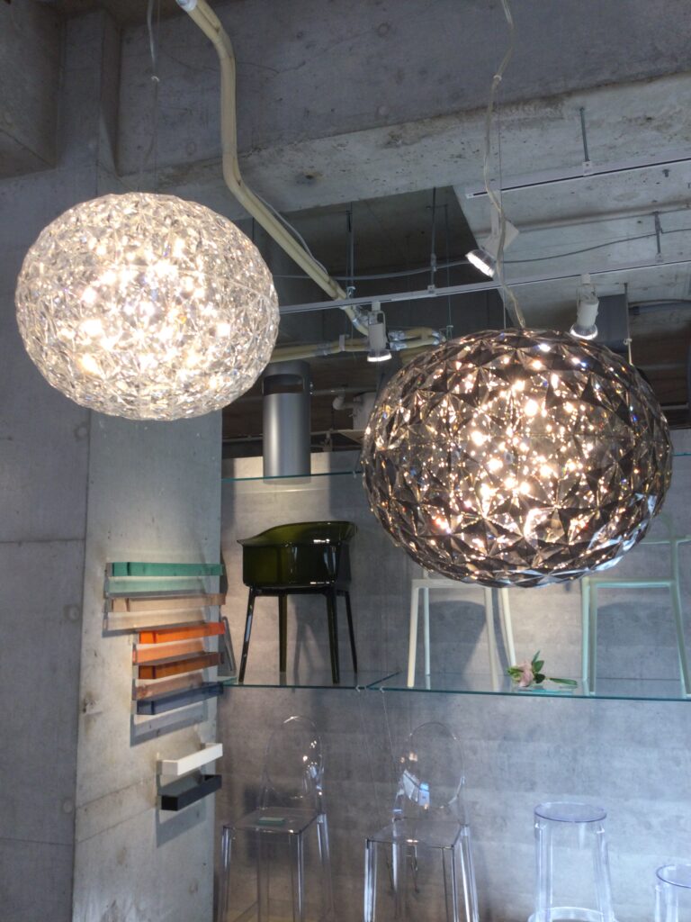 親切なスタッフの方の説明によると、自動車部品のメーカーとして培った加工技術を生かしてさまざまなデザイン商品を作っているというKartell。