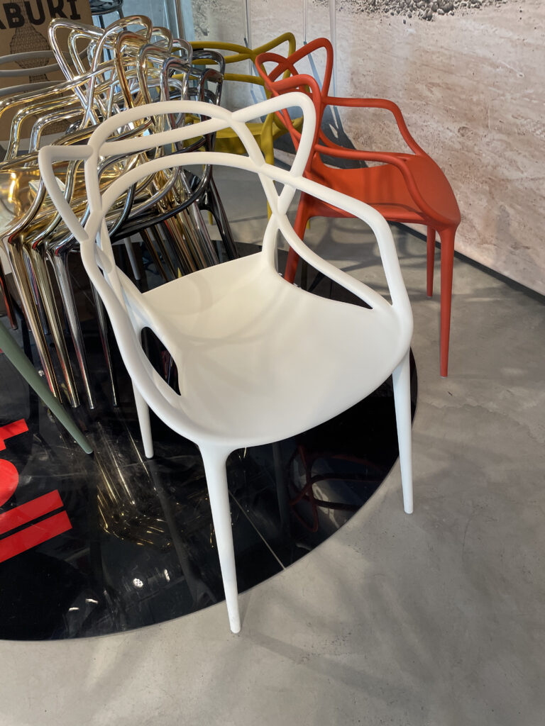 そして代表作のチェアーも樹脂ならではの加工性を活かしたデザイン。