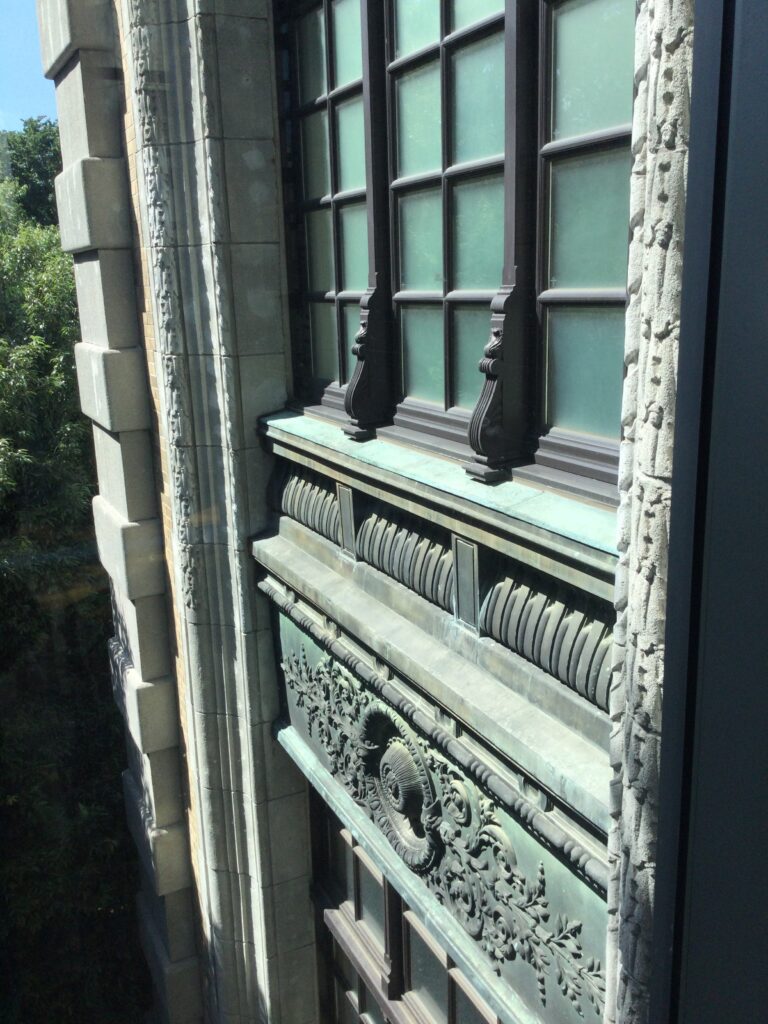 古い部分の建造年代の差の他に、後年の修復・増築の仕方がとても面白いところです。当時外壁であった部分をガラス壁で覆い、廊下やテラスのようにしている部分(張り出し窓)が随所にあり、例えば2階3階の外壁など、普通目にすることが難しいところを間近で見ることができるのです。