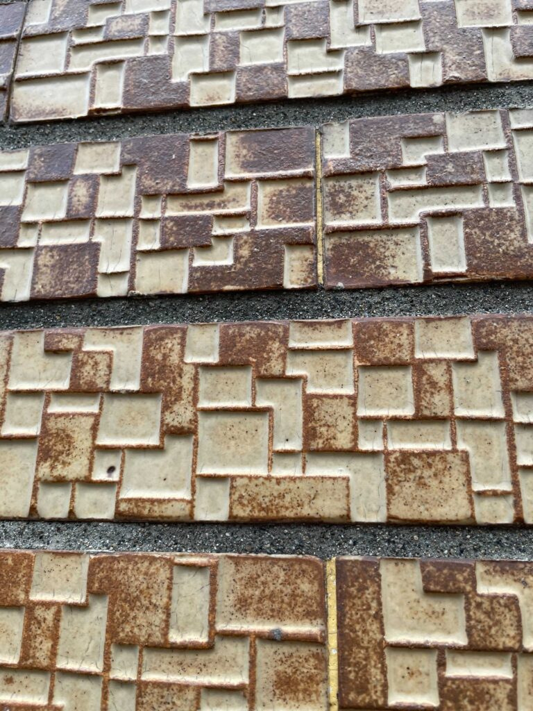 気になってつい見てしまうのが意外と古いタイルです。見かけたりするとつい写真を撮ってしまいます(近いうち無くなっちゃうかも、と思うのかもしれません)。