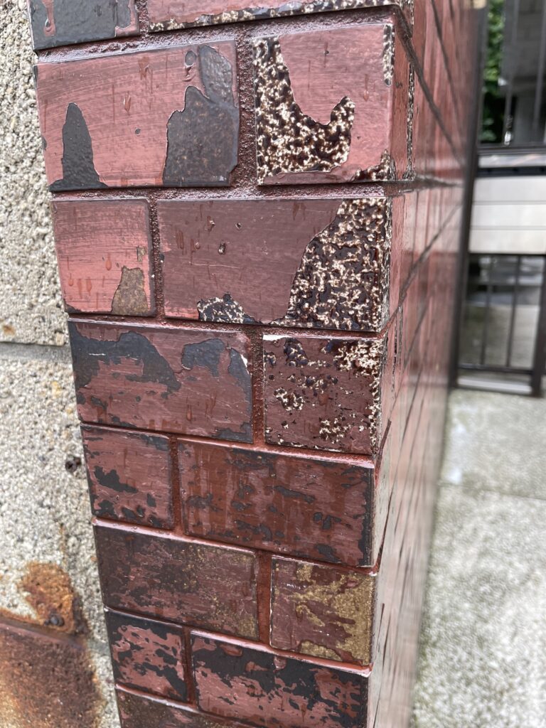 少し前からですが、タイルの壁面を上から塗装する例を見かけることが多くなりました。防水と今後のメンテナンスを考えたのだなあと(タイルは目地が切れるとそこから染みます)理解はできるのですが、ついタイルの気持ち(?)になって「く、苦しい…」と思ってしまいます(笑)。