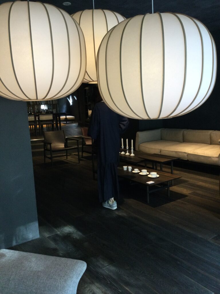 スタッフの方によると「実はここ、オフィスだったんです。勿体ないですよね。今は皆さんに見て楽しんでもらえるようになりました。」とのこと。内装は濃いグレー調の壁ですが、窓からの採光や落ち着いた雰囲気の家具・工芸品と見事に調和して、大型商業ビル内のショールームとは全然違う空気が流れている感じです。