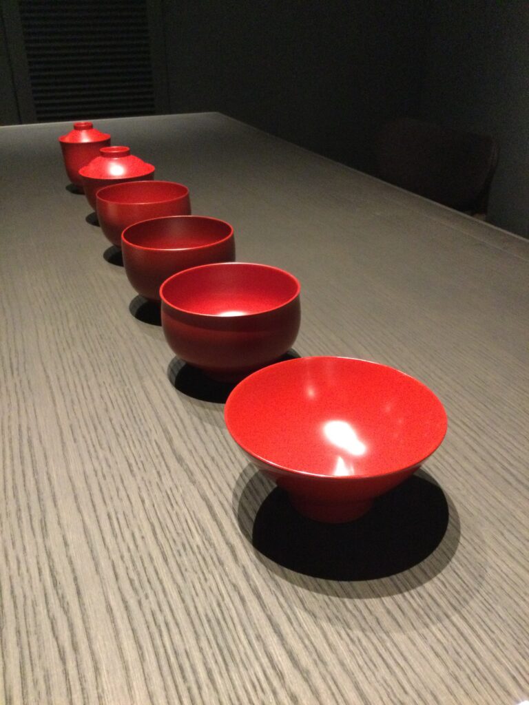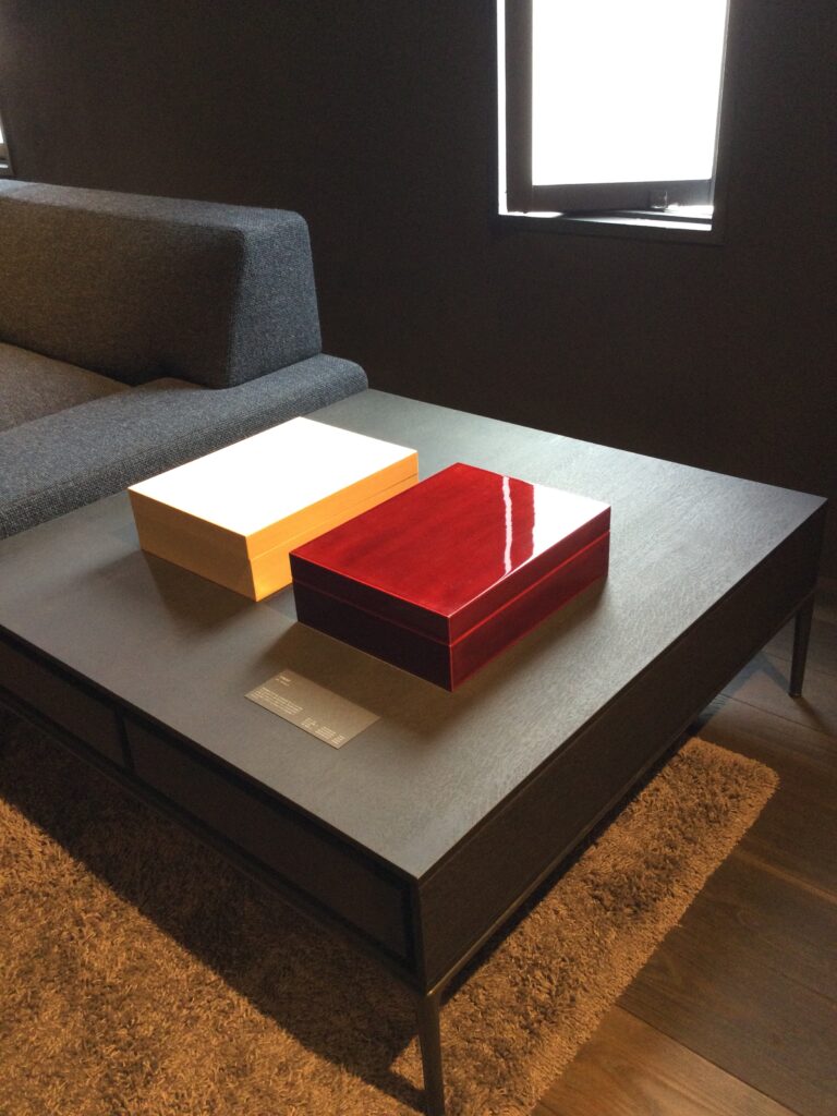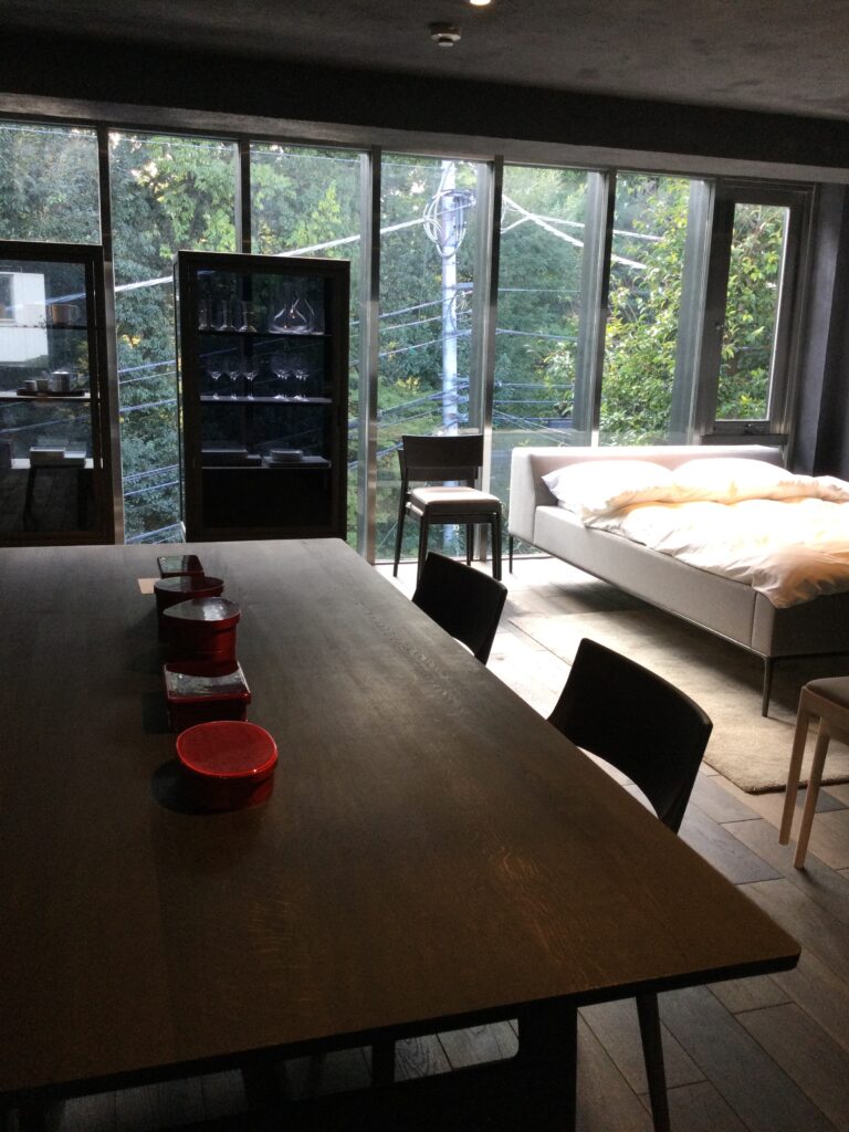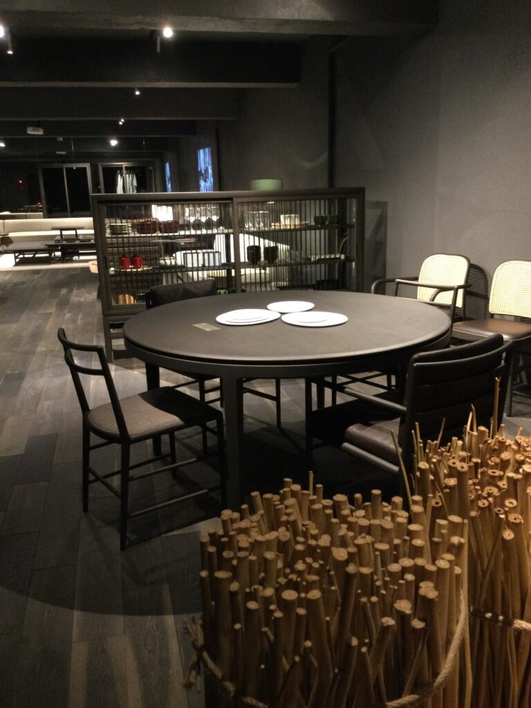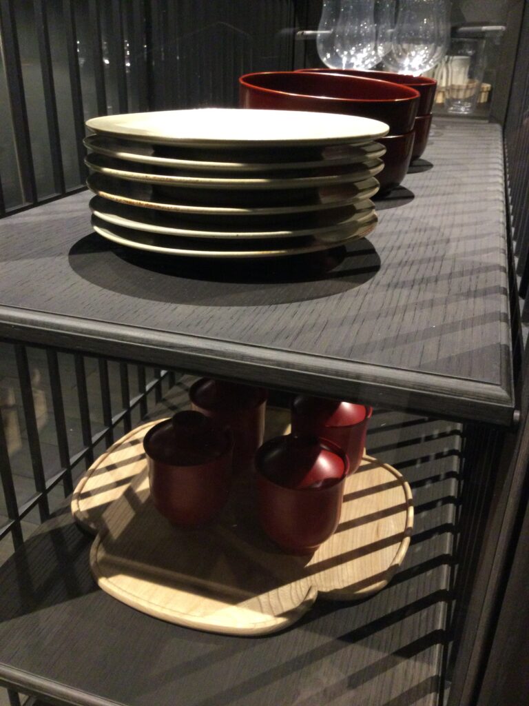 おやおや、家具のショールームと思いきや、陶器・ガラス・漆器…いろいろありますね。ディスプレイの食器にしては充実し過ぎじゃない?と思うと途端にいろいろ気になりだす食器マニアのコジマです。それもそのはず、こちらはテーブルウェアも手掛けるブランドでした。