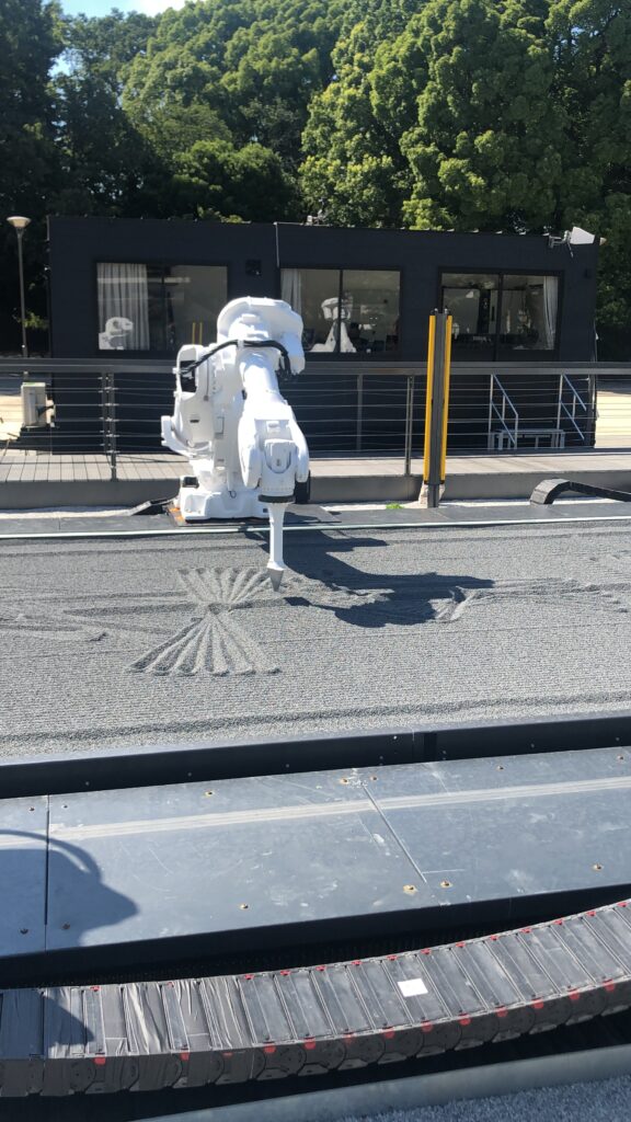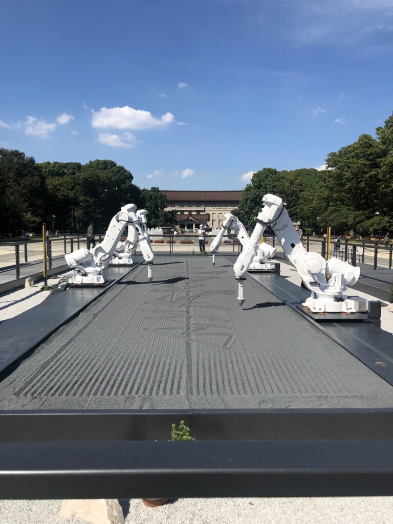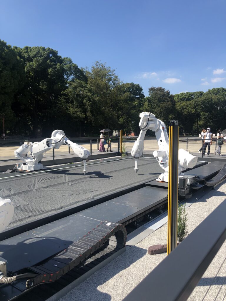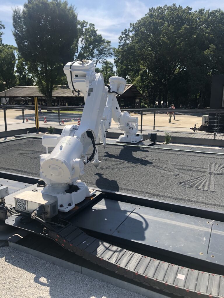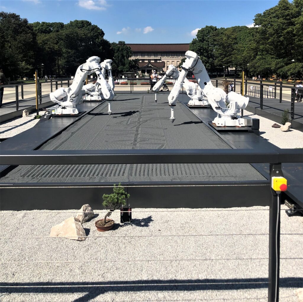 作品名は「ザ・コンスタント・ガーデナーズ」。『日本古来の伝統(禅庭園)・最先端コンピューター技術・産業用ロボット工学』を融合した作品とのことです。