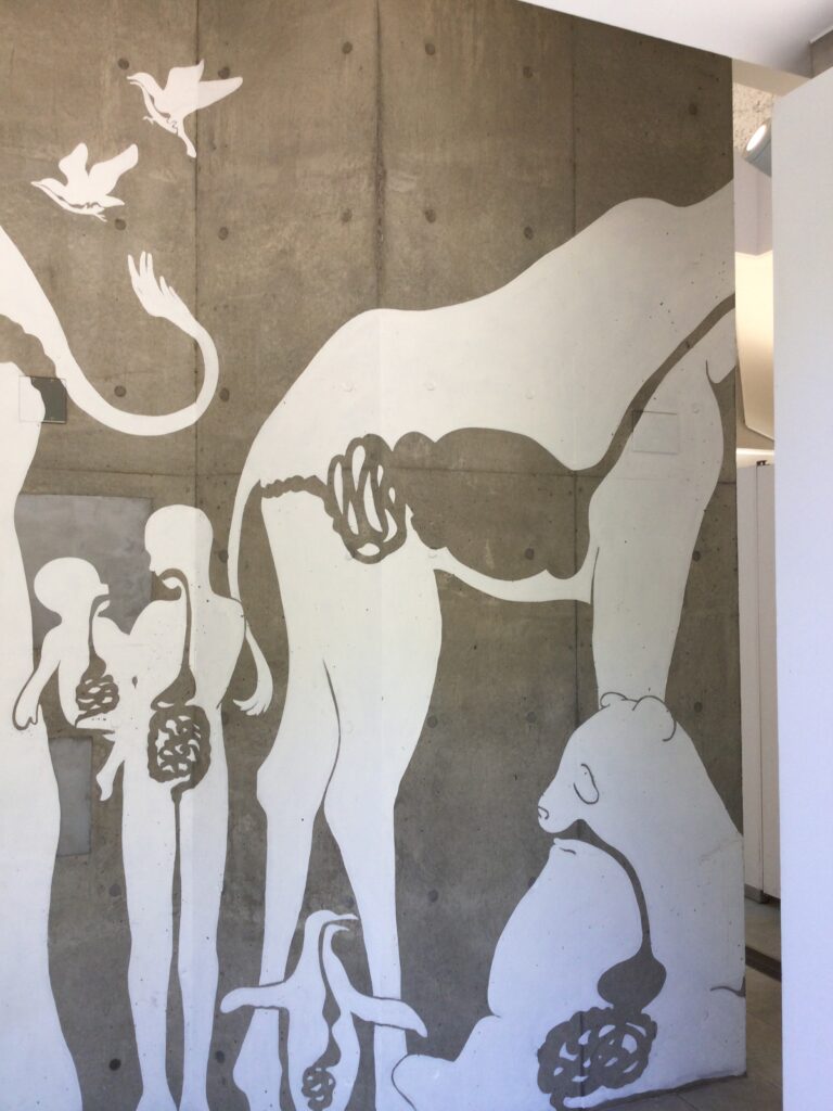 このトイレは「排泄から健康を考える」をテーマに作られています。流水音の擬音装置の代わりに、動物の鳴き声に似せた音や、トイレに描かれている背景に合った音を藝大生が作曲・演奏したものを流すそうです(そこまでやる!)。
