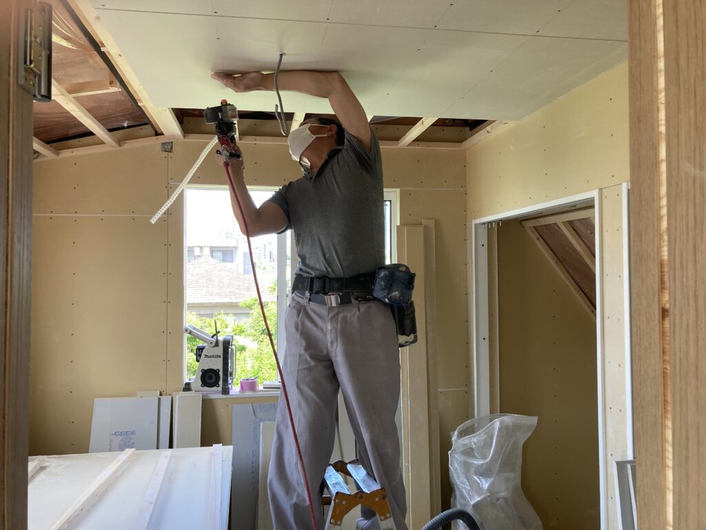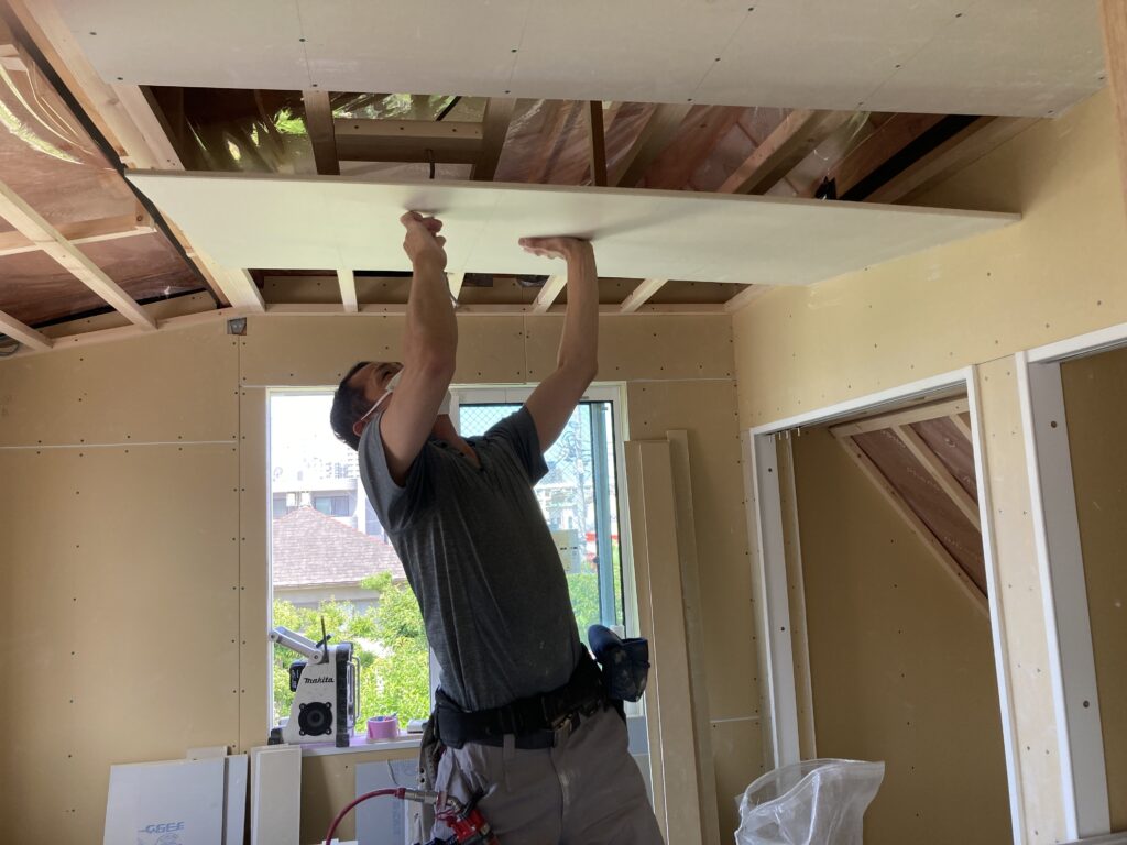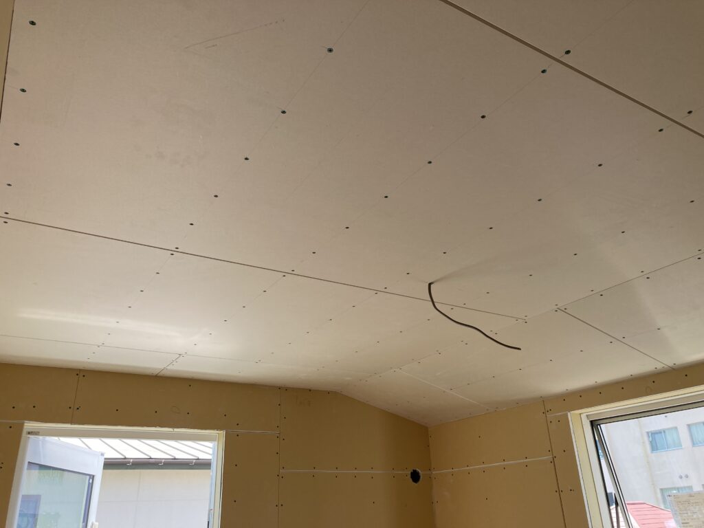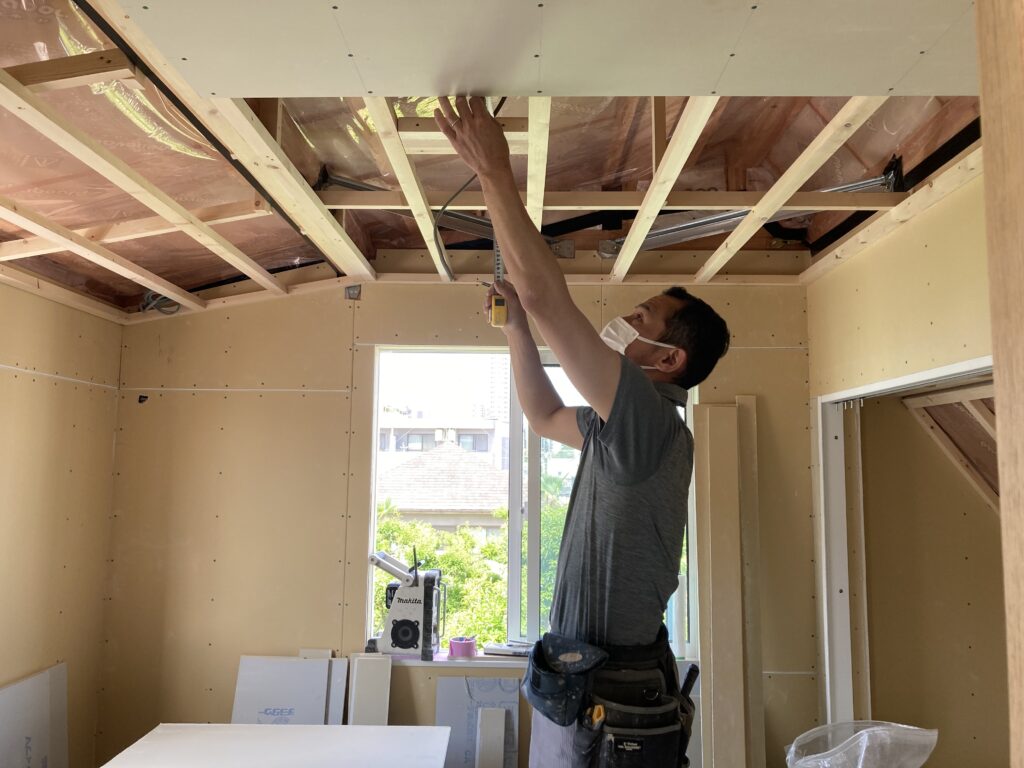 そして3Fでは、天井に石膏ボードを取り付けていました。