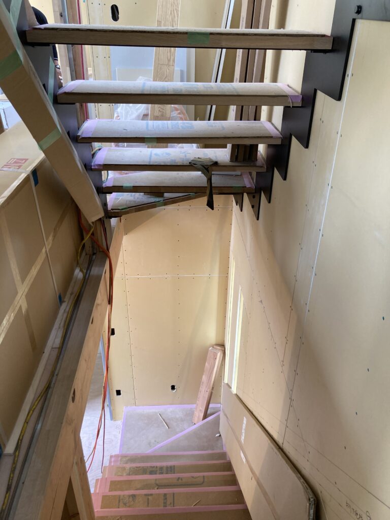 1Fから2Fへと上がる階段(木製)が出来上がっていました。
