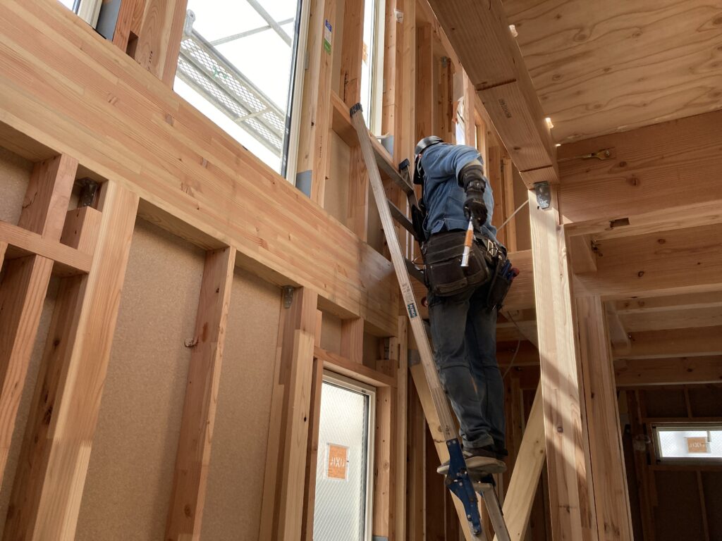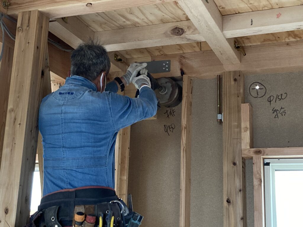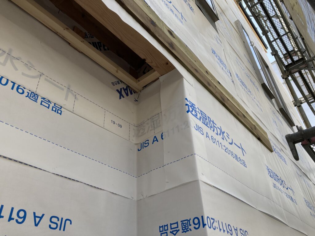 壁には“防水性”と“壁内部の湿気を外に逃がす透湿性”という2つの機能を兼ね備えたシートを張っていきますが、ただ張れば良いのではなくて、張り方にも工夫があるんです。