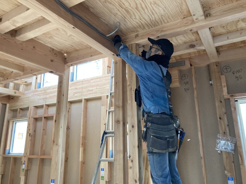 設備の配管・配線、コンセントの位置決め、吸排気穴の開口作業などをしています。