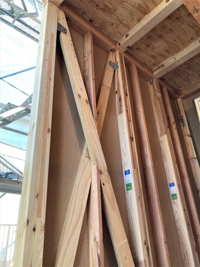 こちらが“筋交い”。ばってんではなく、どちらか1本の筋交いは“片筋交い”と言います