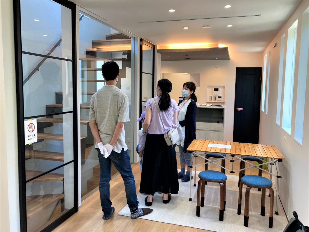 ご来場いただいたお客様も私たちスタッフも、玄関でお出迎えした時は多少緊張気味なのですが、一つ、二つ、言葉を交わしていくうちに、だんだんと笑顔になり、とても良い雰囲気の見学会になりました。