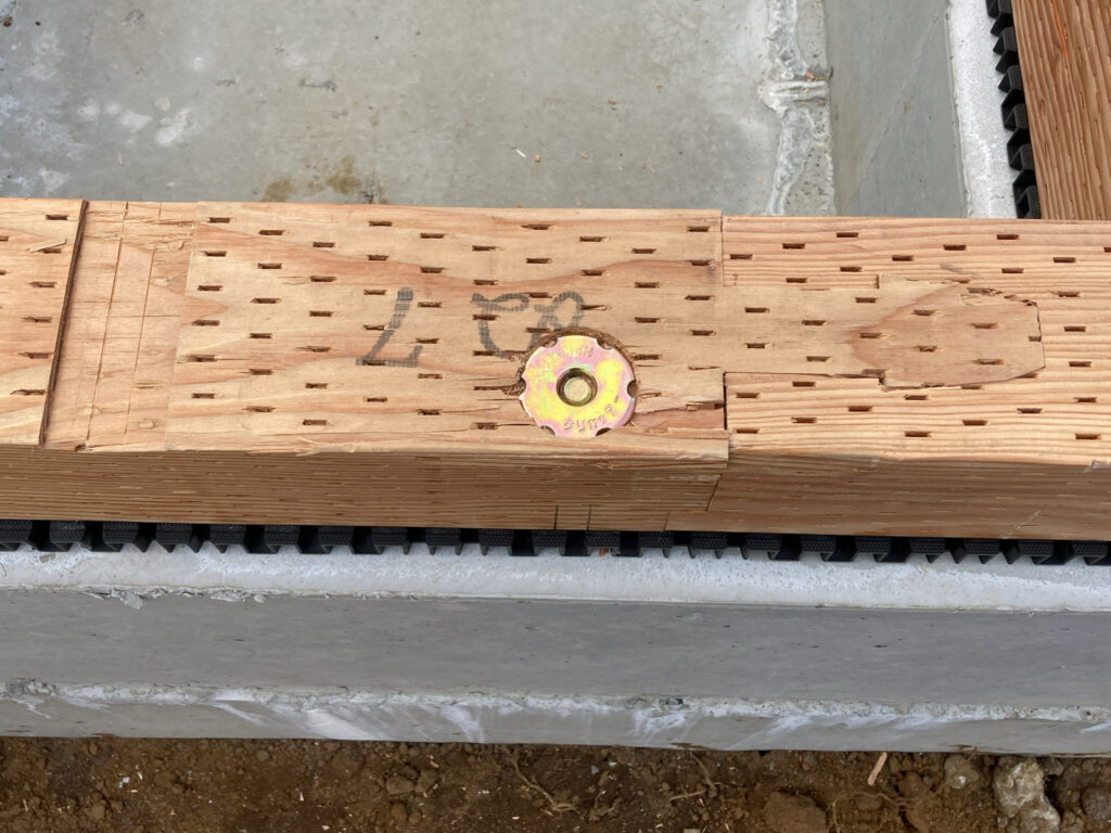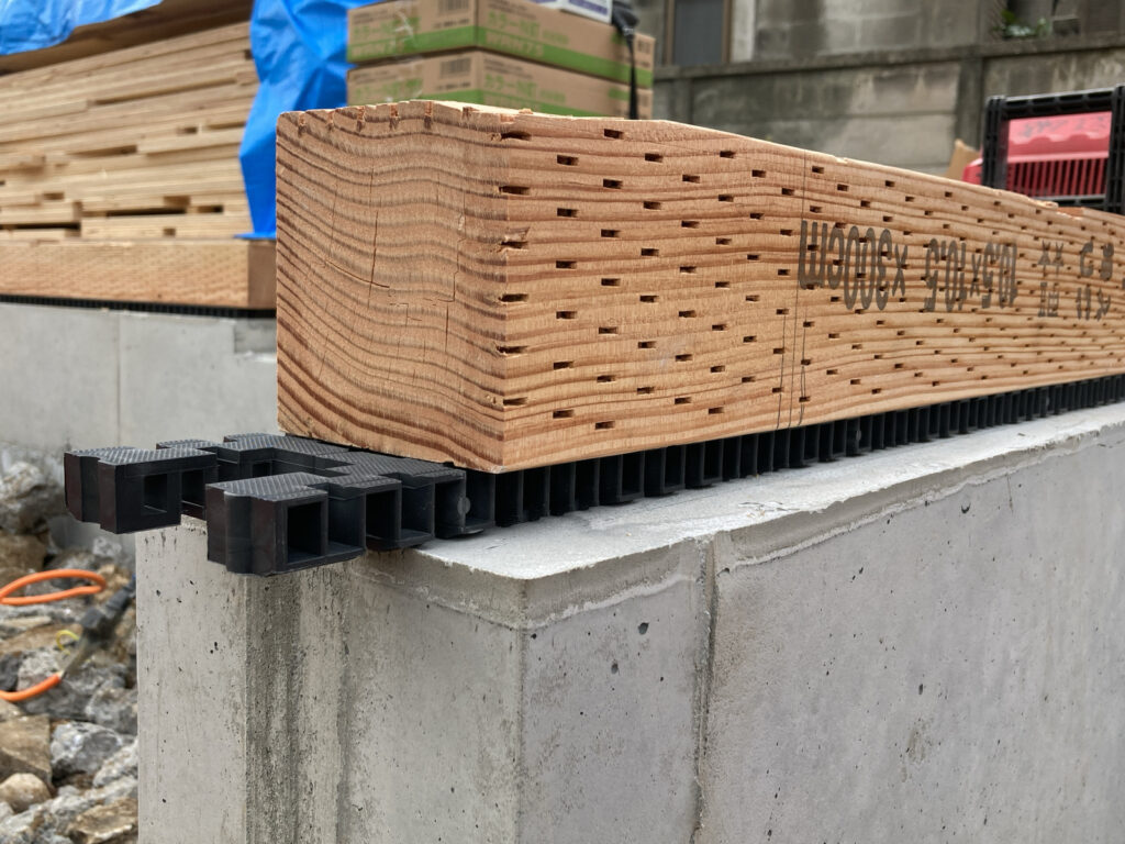 このパッキンを挟むことで、基礎上部と土台木材の間に隙間ができて、床下の換気がスムーズに行われます。