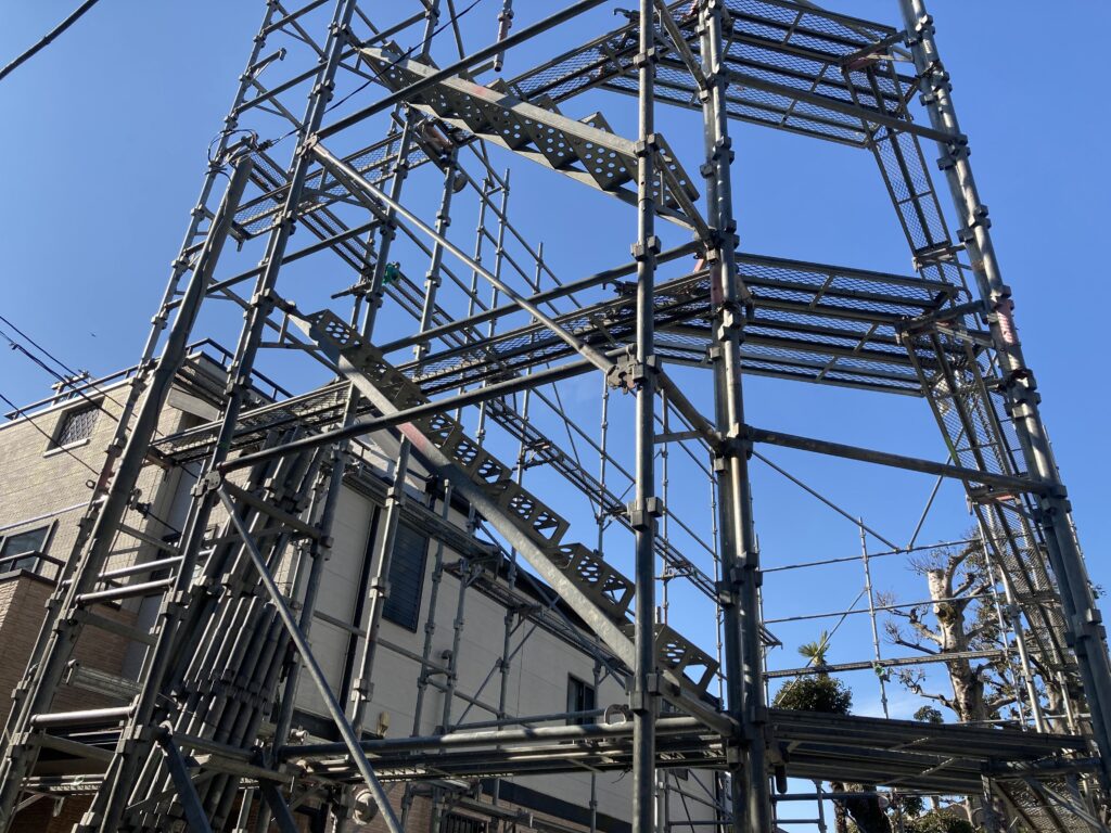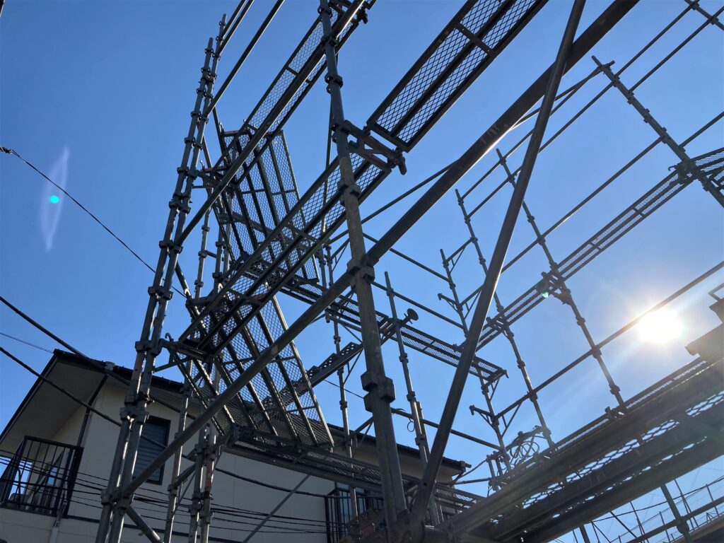 完成・引き渡しまで必ず無事故でありますように!と出来上がった足場を見て思いました。