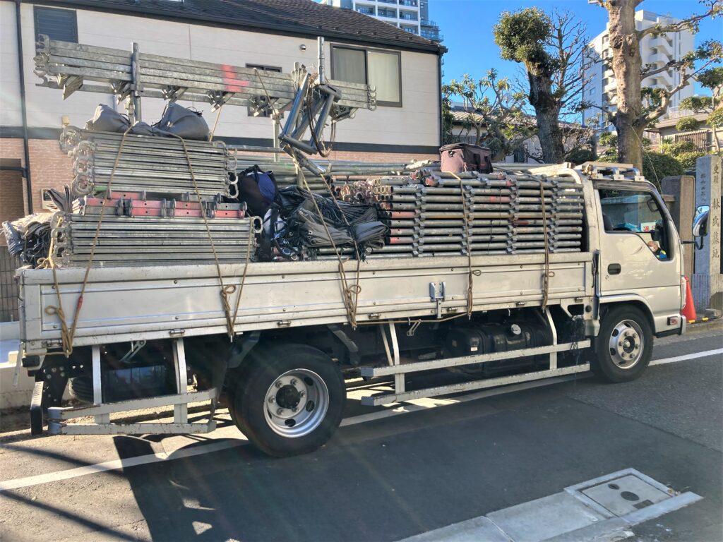 しばらくすると、足場の資材を載せたトラックがやって来ました!