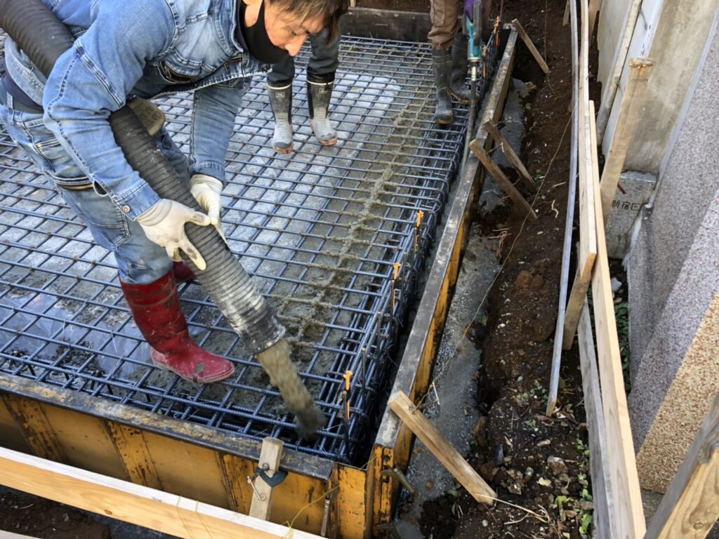 全ての床面にコンクリートを流し込み、丁寧にならし終わると作業は完了です。