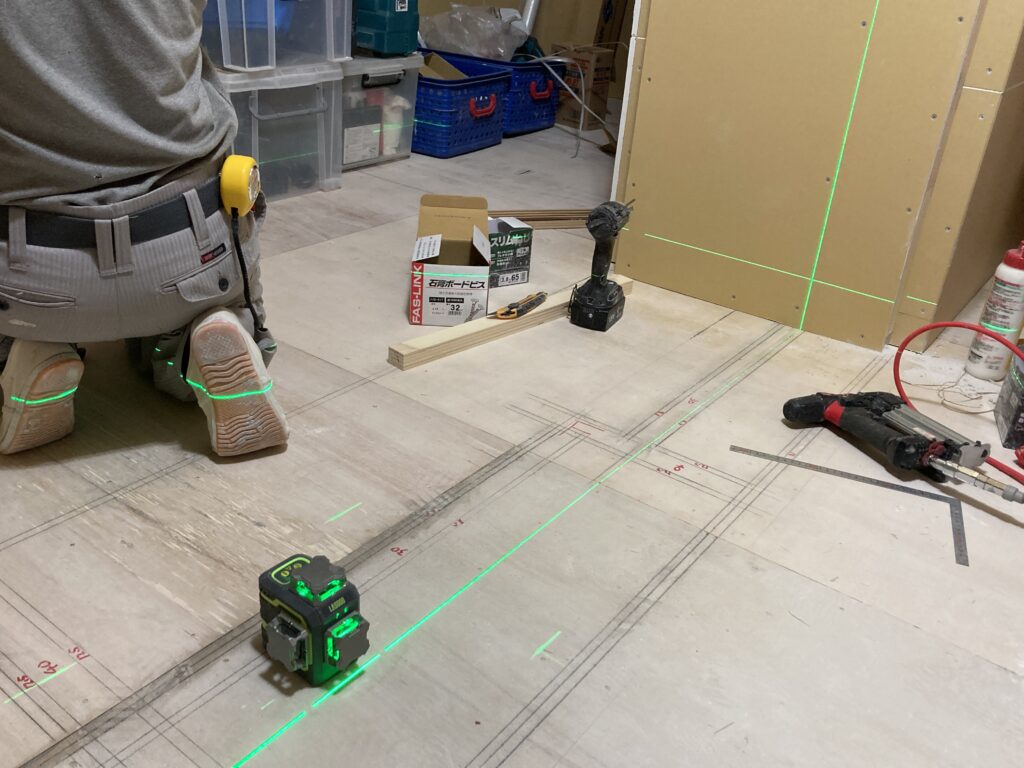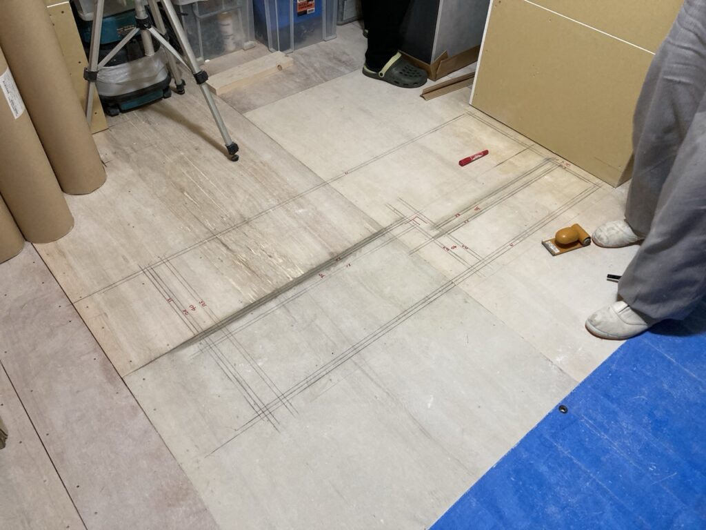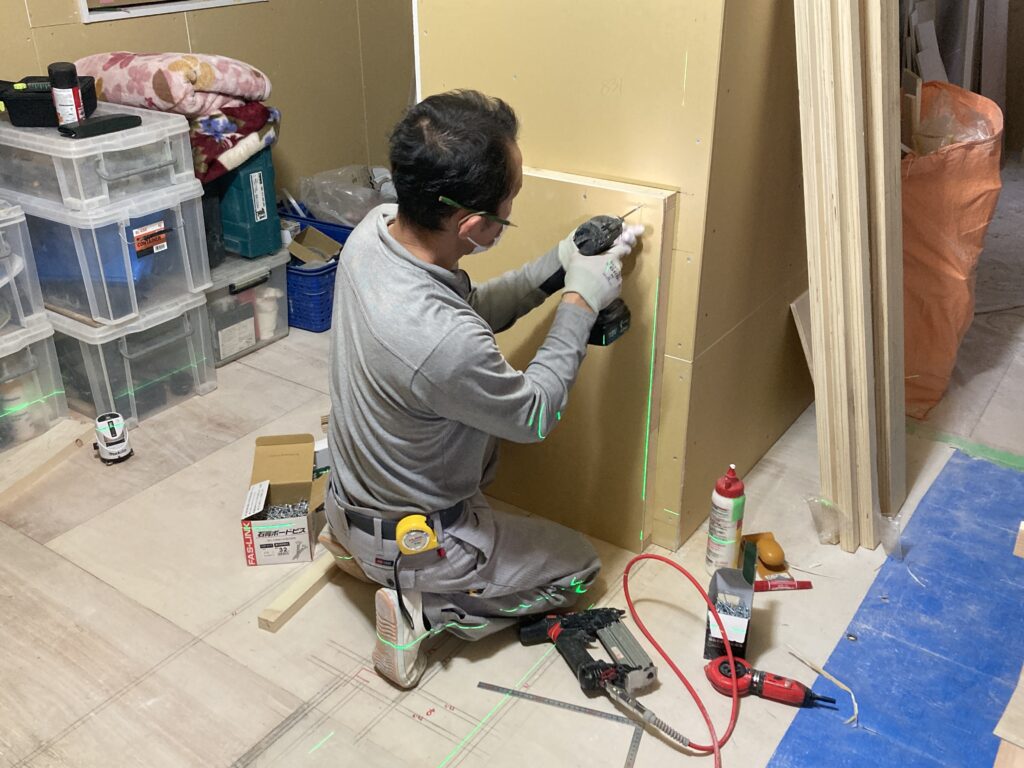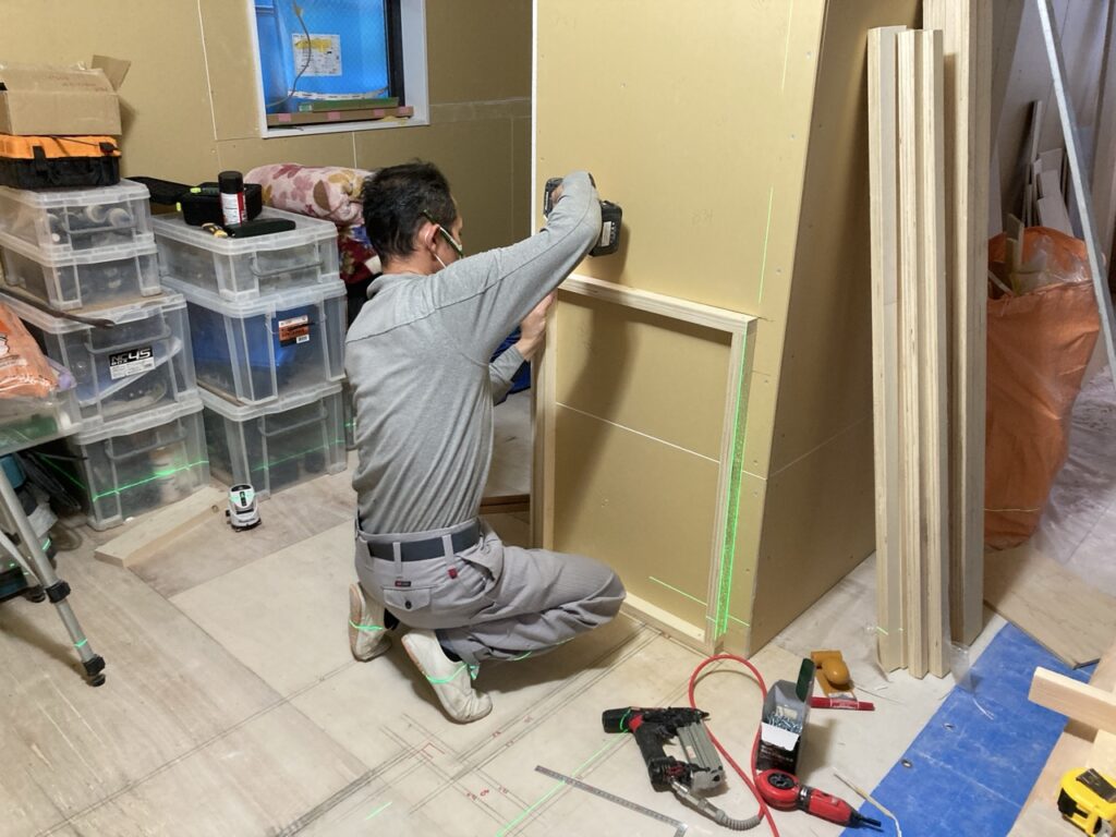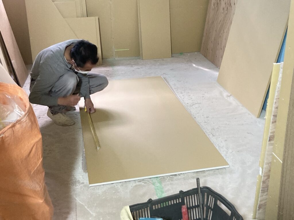 壁付けのキッチンが取り付けられるのですが、その背面側に設置されるカウンターを作っていきます。
