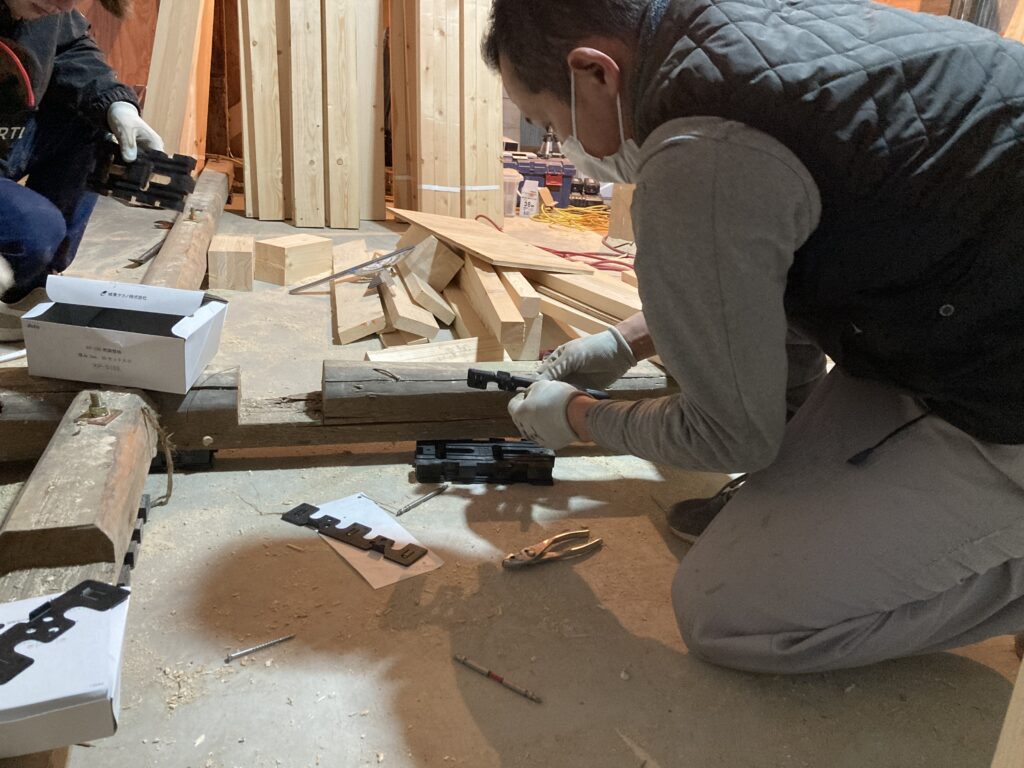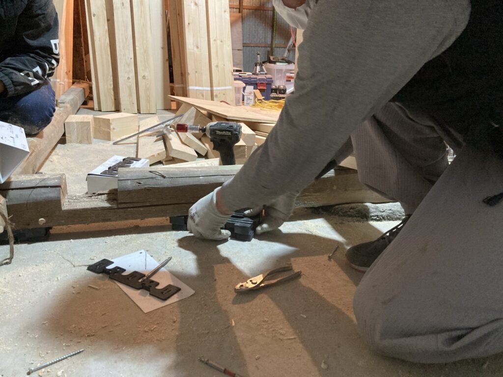 C様邸の現場では、今日も大工作業が進んでいます。