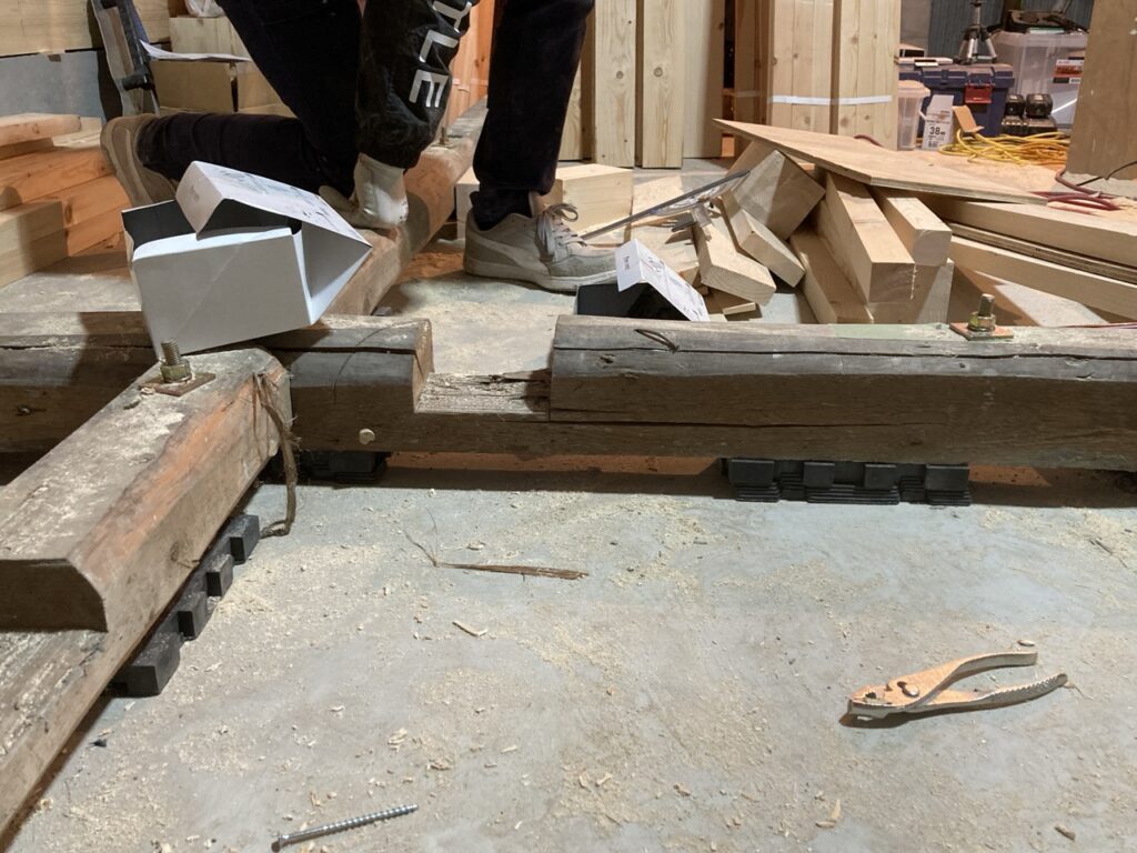 土台や柱の取り替え・補強をしつつ、お家を長持ちさせるために基礎パッキンという部材を設置していました。