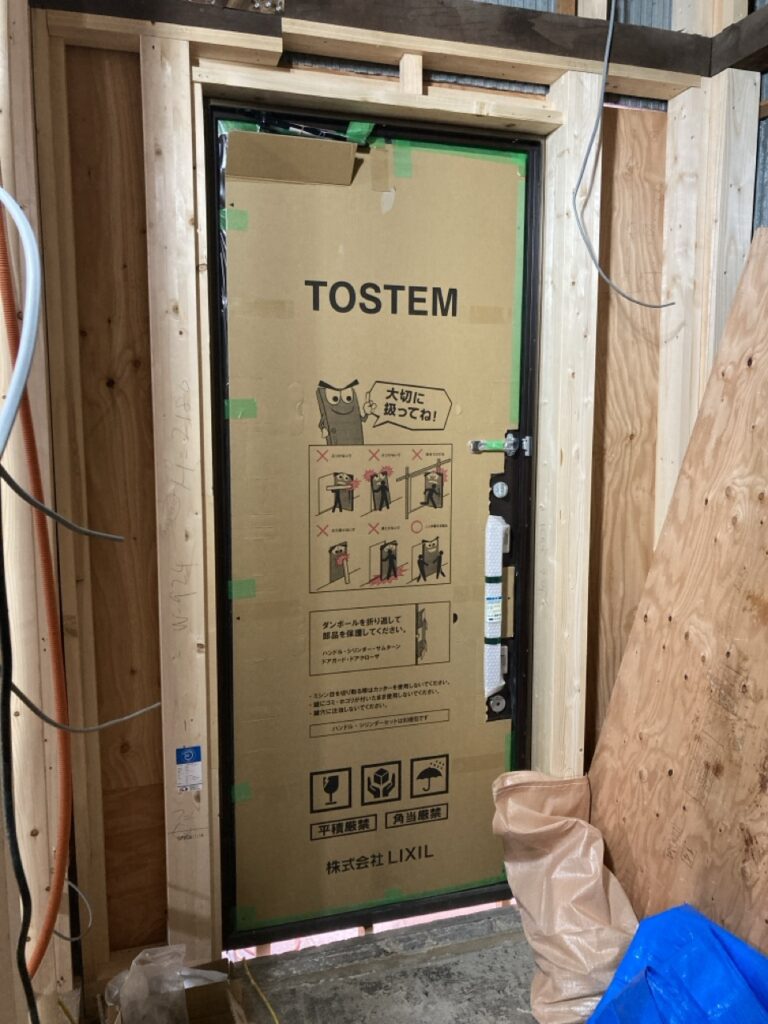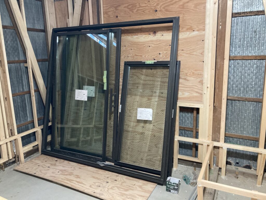C様邸へ行くと、ドアとサッシが取り付けられていました。