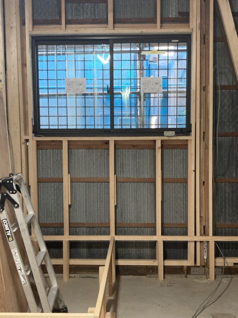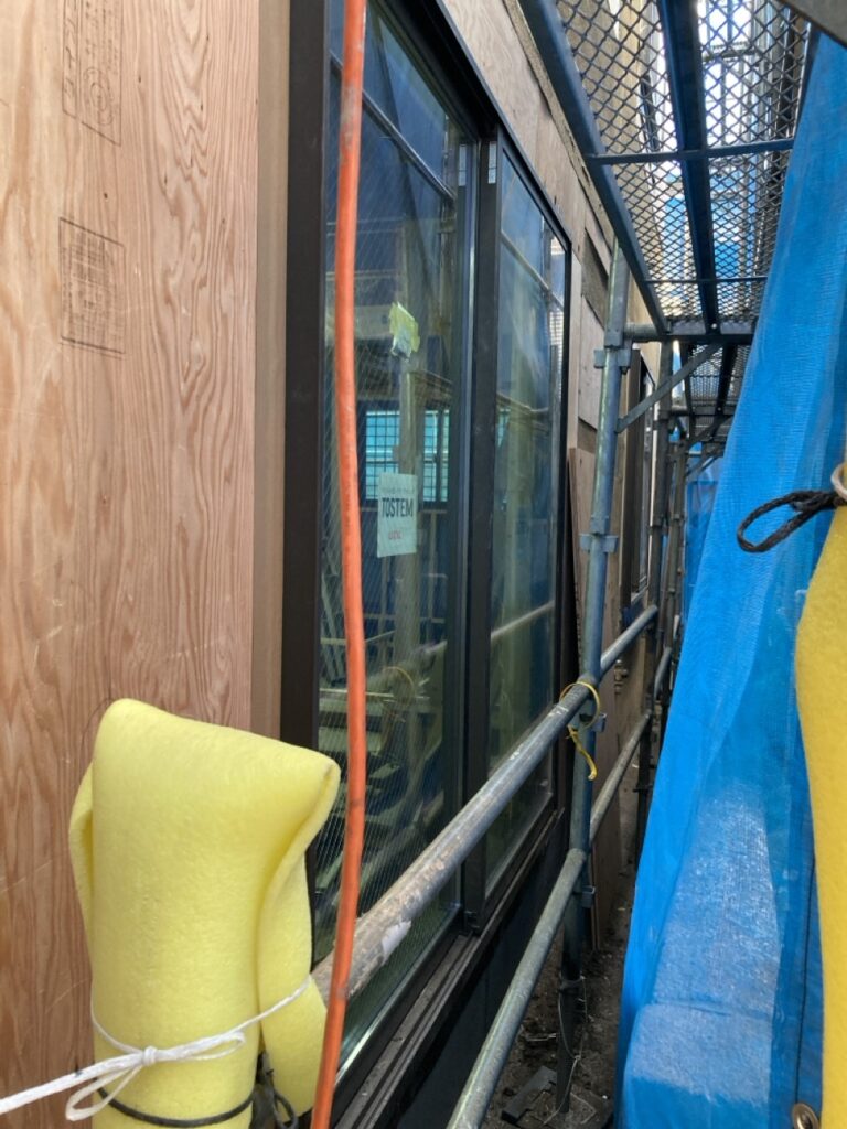 ちなみにサッシを取り付けてから、外壁に防水シートが張られます。