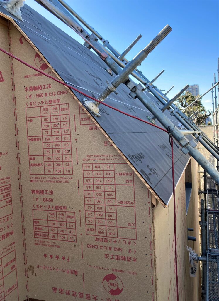 新宿区 M様邸/新築/施工工程 ⑬屋根・壁下地・バルコニーなど