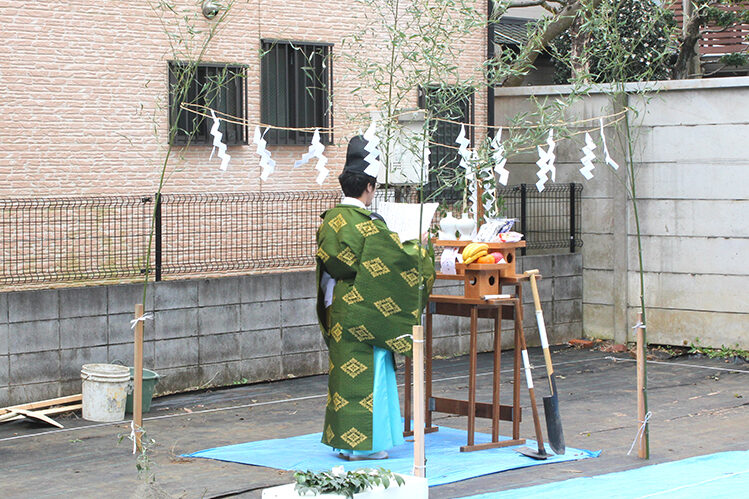 地鎮祭とは、建築工事が始まる前に神主を招き、その土地の神様に対して「工事の安全」と「建てた家が何事もなく、永くその場所に建っていられること」を祈願する儀式のことを言います。