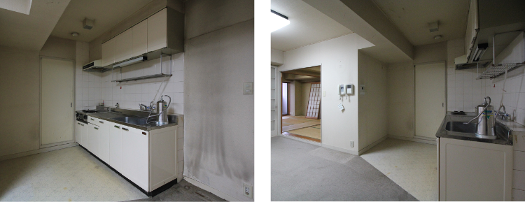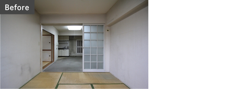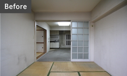 和室とダイニングの2部屋になっており、ダイニング側は窓がなく薄暗い空間になっていました。