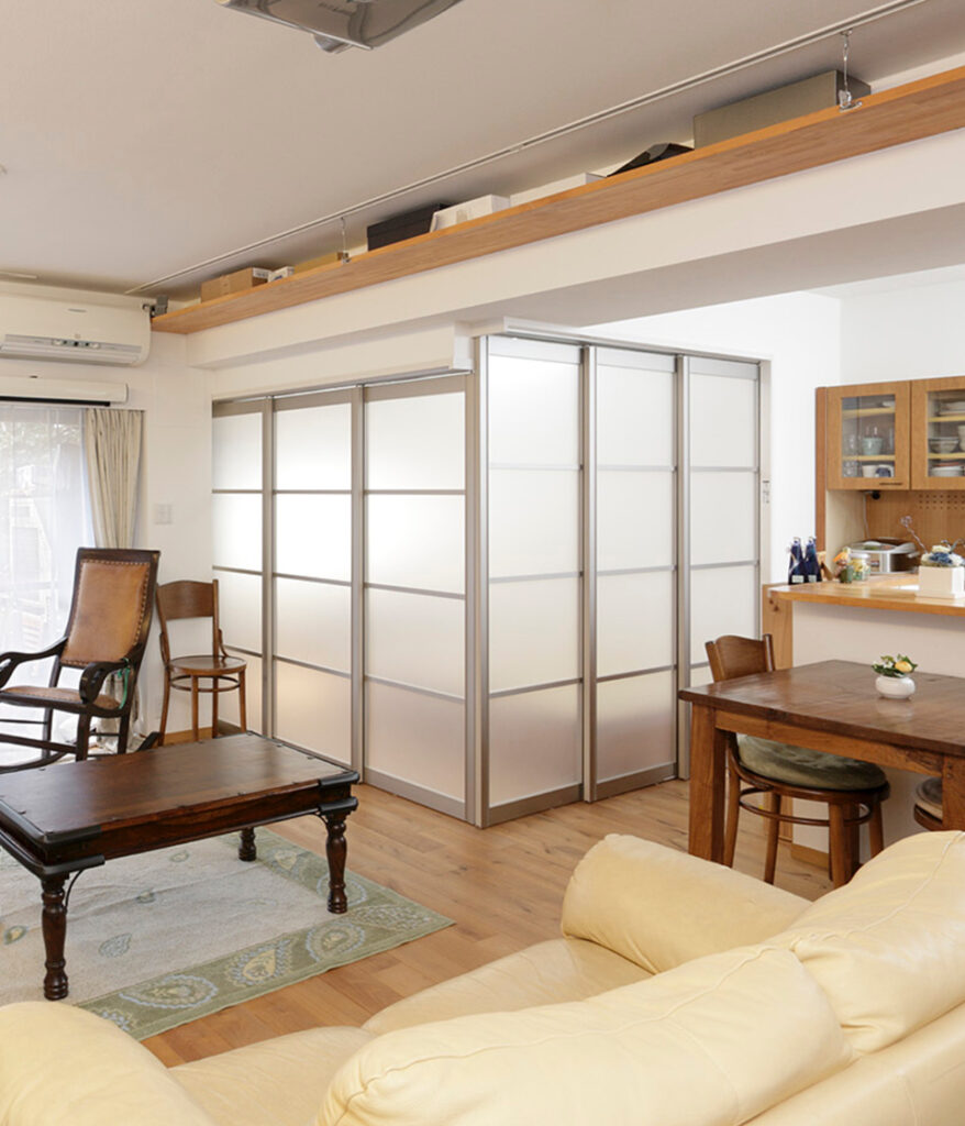 ▷ 扉で仕切れば個室空間に。来客時の寝室としても使えます。