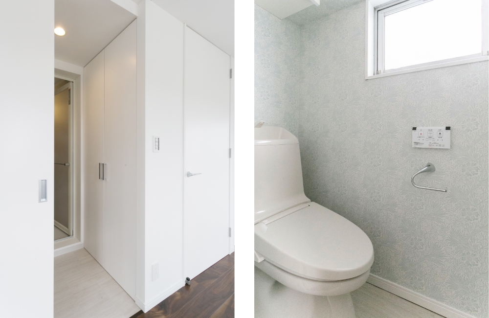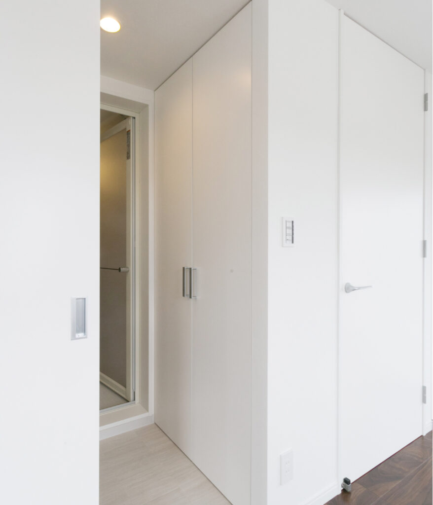 ▷ 扉を閉めると一面が白い壁のようにすっきり。