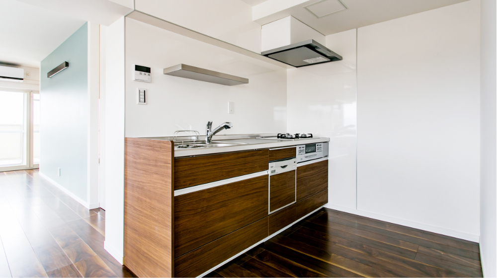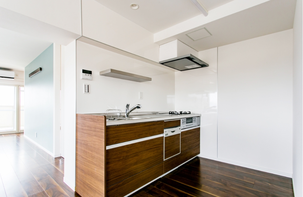賃貸にするお部屋のリフォームということで、誰でも使いやすい部屋になるよう配慮しました。その上で、デザイン性にもこだわりました。壁を取り払い大空間の明るいお部屋になったので、家具などの配置によって住む方のお好みの空間にアレンジしていただけると思います。