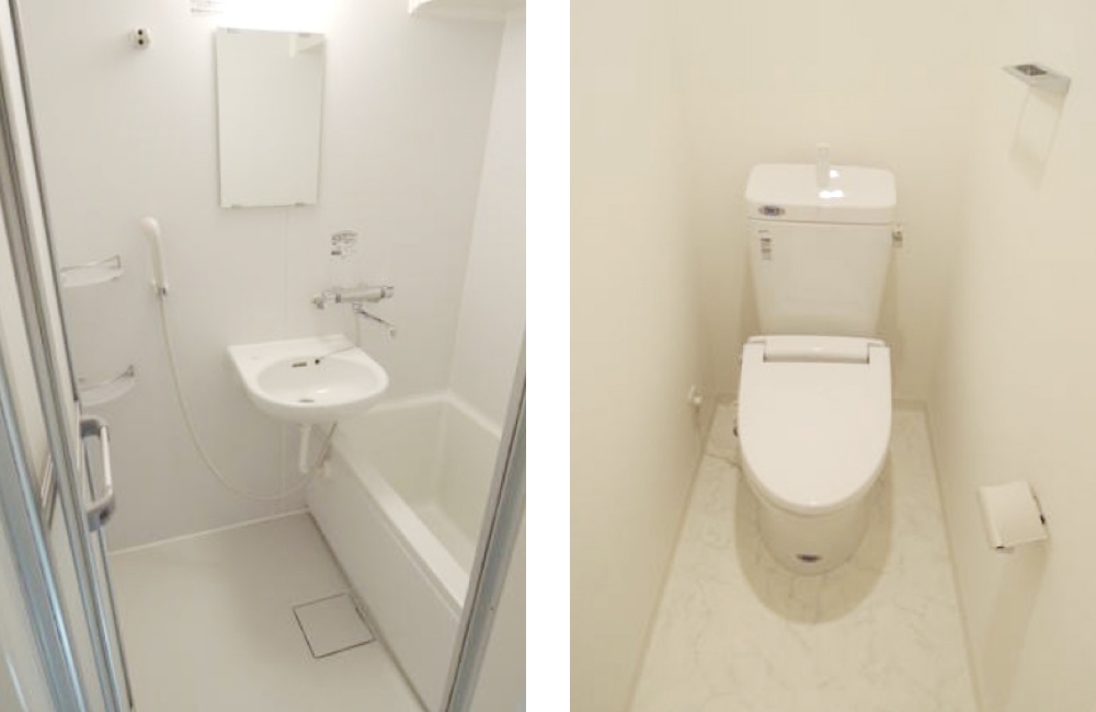 お風呂とトイレが一緒になった昔ながらの三点式ユニットでしたが、浴室とトイレに分けて使い勝手をよくしました。最近の賃貸マンションはトイレと浴室が一体だと敬遠されがちなので、その問題を解消しました。