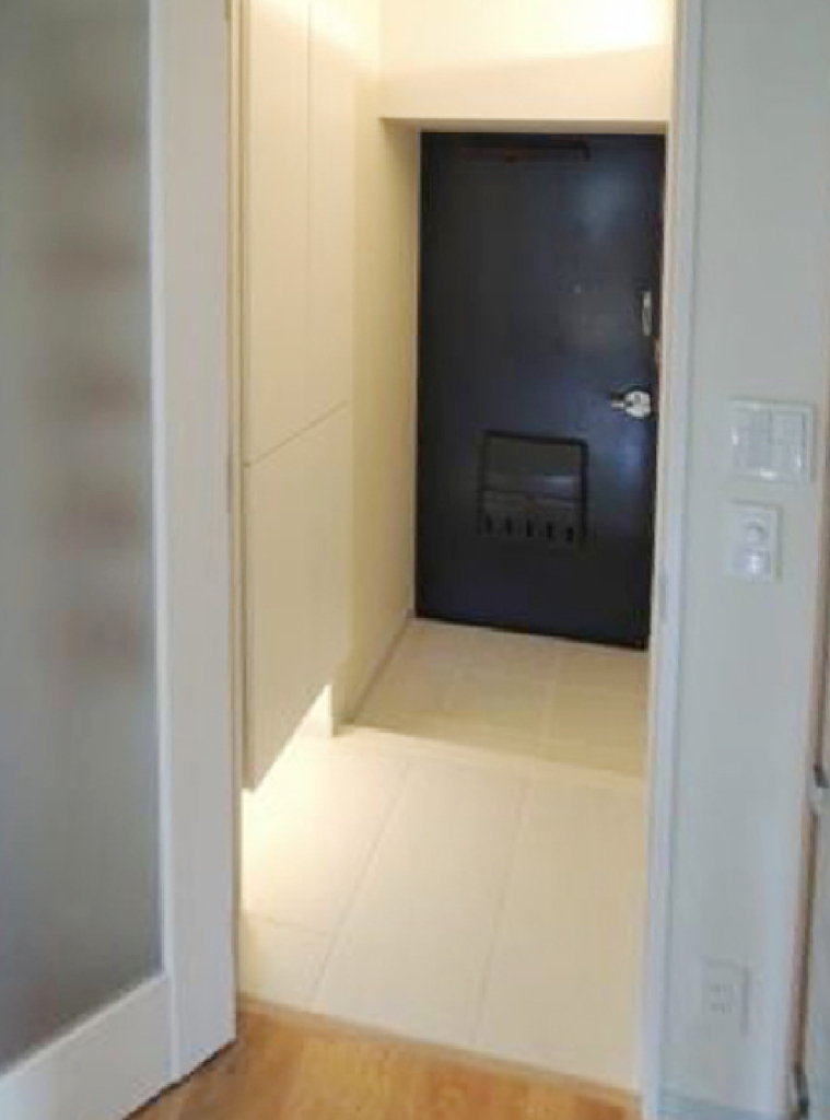 もともと洗濯機スペースはベランダにあったのですが、それを室内に持って来ました。その上で必要なスペースを確保できるよう工夫し、物を見せずにスッキリした部屋を実現しました。