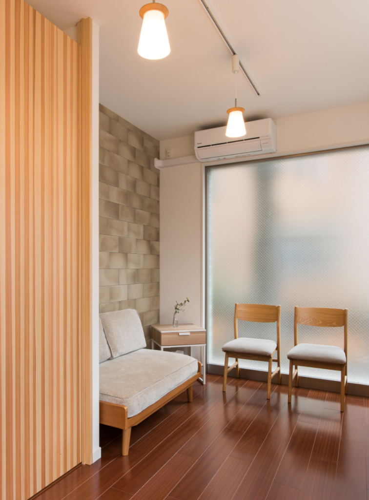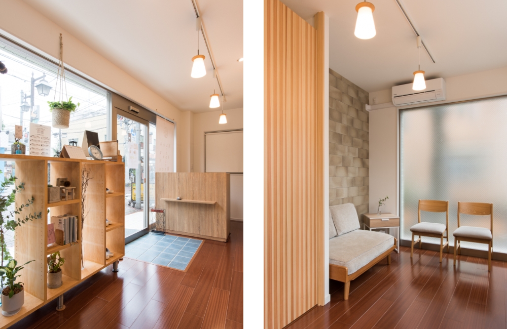 当社は、一般住宅がメインで、店舗リフォームは守備範囲外なのですが、長年お世話になっているお客様からのご紹介で、整体院の改装をお手伝いさせていただきました。お疲れの体で来ていただいたお客様に、安心・リラックスして過ごしていただけるよう、落ち着きとやさしい雰囲気のあるお店作りを心掛けました。最終的なデザインの良さは、施主様のセンスあってのものだと思います。楽しいお仕事をさせていただき、ありがとうございました。