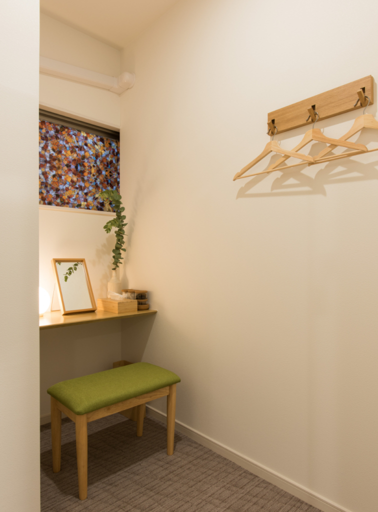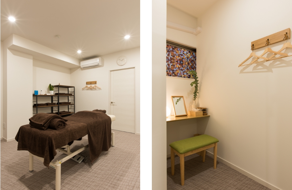 照明は施術に来られたお客様の要望に合わせて、明るさを自由に変えられます。お一人ごとの予約制なので、ゆったりくつろげます。