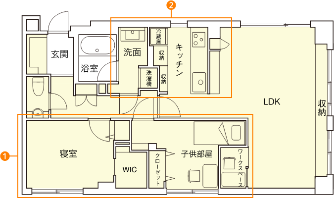 ご要望:ふたりで料理ができる、広いキッチンにしたい