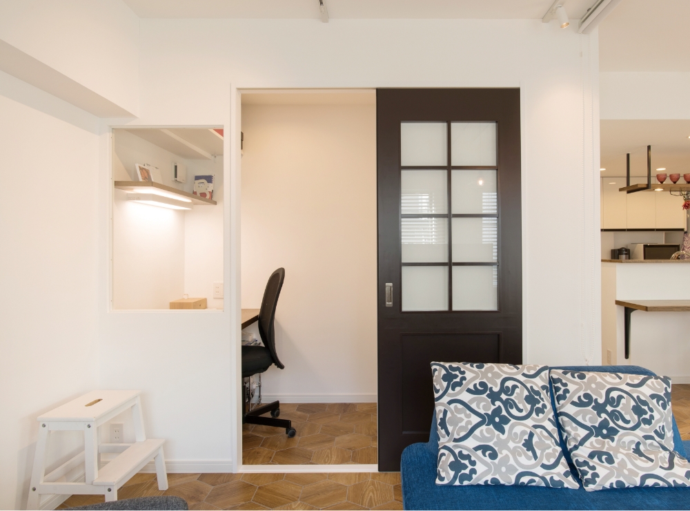 新型コロナの影響でご夫婦ともに在宅ワークが多くなり、「家族みんなで過ごすおうち時間」が増えました。そこで、仕事に集中できるワークスペースを設けるともに、おうち時間を楽しく、心地よく過ごすためのリノベを行いました。在宅ワークをきっかけにリフォームを検討される方のヒントになる事例です。
