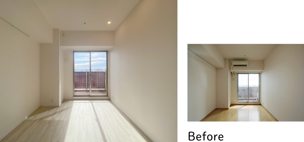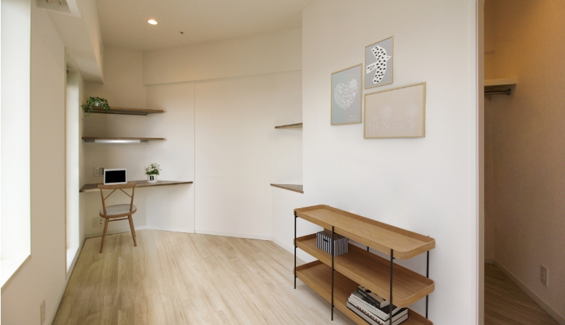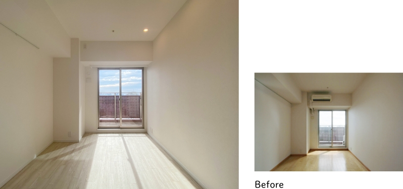 床を淡いブラウンに変更したことで、部屋の印象が大きく変わりました。