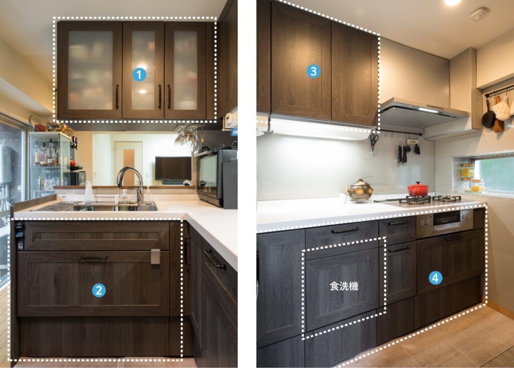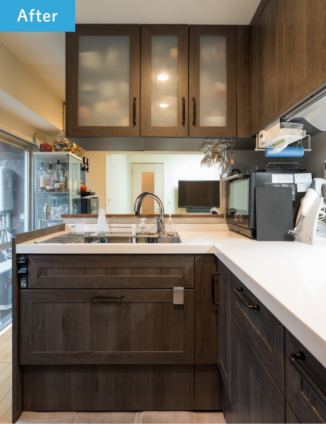 料理好きで、月に1度は友人を招いてのホームパーティをされるG様。キッチンリノベのテーマは「作業性の追求」でした。「キッチンレイアウトの変更」と「具体的かつ詳細な収納計画」によって、施主様のキッチンワークに適した、施主様にとって使い勝手のよいキッチンを実現しました。